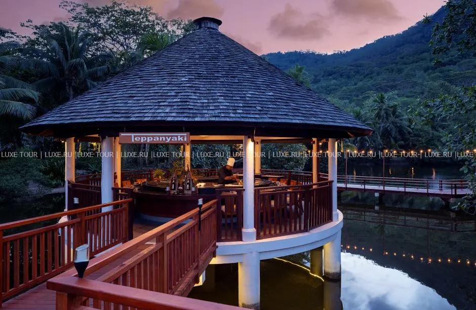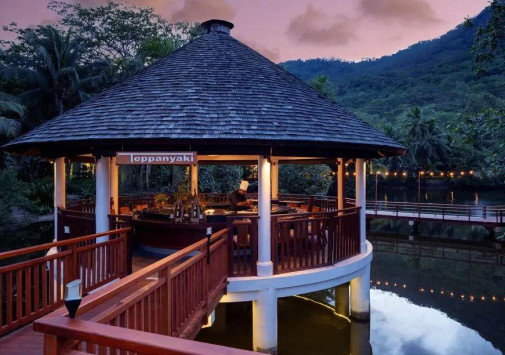 • В японском ресторане Teppanyaki, расположенном в небольшом павильоне над озером, шеф-повар в присутствии гостей готовит превосходный гриль-тэппаньяки.