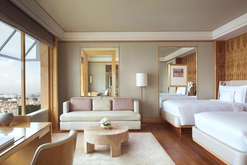 - 51 м2. Состоит из спальни с кроватью king-size или двумя кроватями twin, рабочей зоны и зоны отдыха с диваном, ванной комнаты с ванной, душем и окнами, гардеробной. Вид на реку Каланг и спортивно-развлекательный комплекс Singapore Sports Hub. Номера располагаются с 4 по 17 этаж. Максимальное размещение – 3 взрослых.