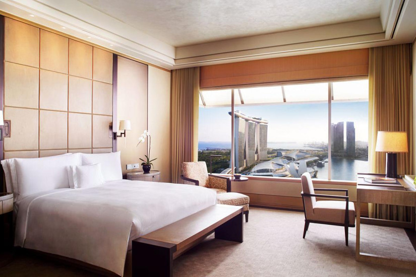 - 51 м2. Состоит из спальни с кроватью king-size или двумя кроватями twin, рабочей зоны и зоны отдыха с диваном, ванной комнаты с ванной, душем и окнами, гардеробной. Панорамный вид на Марина-Бэй. Номера располагаются с 23 по 31 этаж. Максимальное размещение – 3 взрослых. Гостям номера предоставляются услуги The Ritz-Carlton Club и доступ в клубную гостиную.