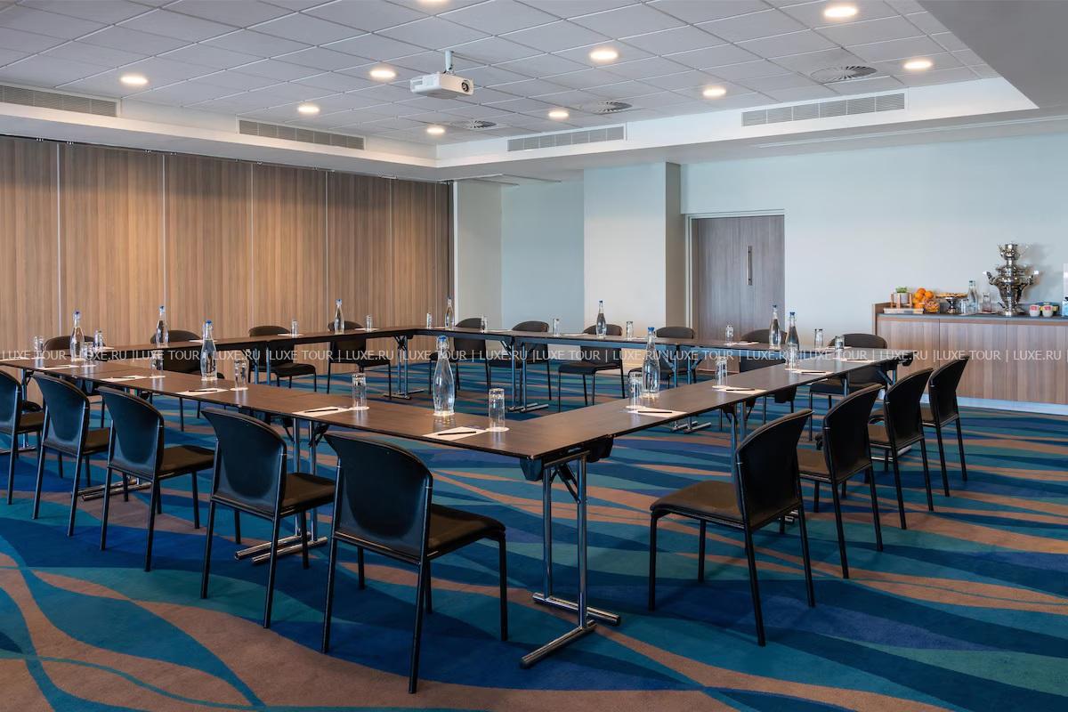 Для гостей – 4 зала для деловых и торжественных мероприятий, вмещающих до 300 человек, бизнес-центр, бесплатный Wi-Fi, парковка, услуги консьержа, услуги прачечной.