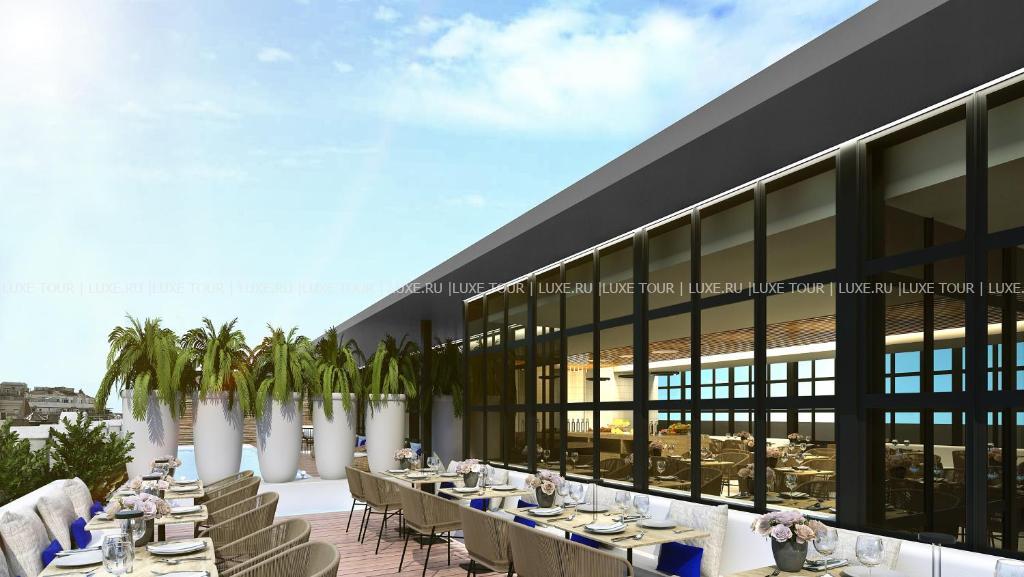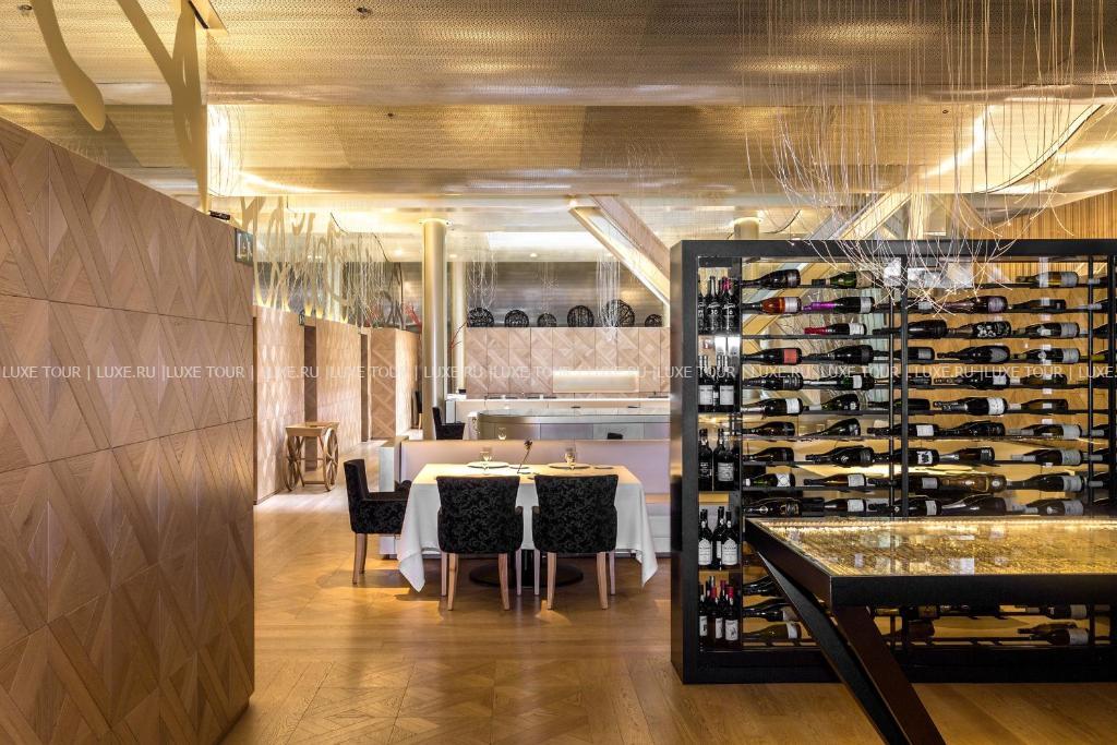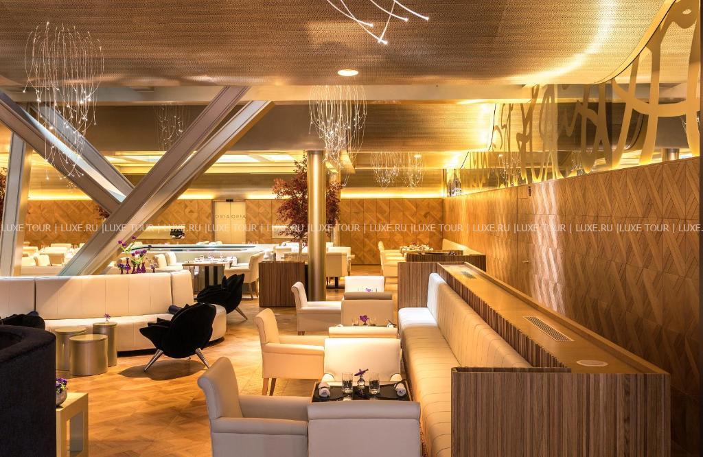 • Ресторан Oria специализируется на средиземноморской кухне с баскскими акцентами и впечатляет оригинальным современным дизайном с пирамидальным потолком и бассейном-лампой.