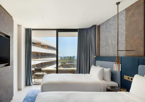 Общая информацияСовременное здание SLS Barcelona с белоснежным многоярусным фасадом возвышается на берегу марины Порт Форум и всего в 15 минутах езды от исторического центра Барселоны. Отель приглашает в мир роскоши и авангардного дизайна – от лобби с серебристыми стенами и витыми люстрами, и «розового» тоннеля, мерцающего неоновым светом, до экстравагантного интерьера шикарных номеров, с балконов которых открывается потрясающий вид на яхтенную гавань и бирюзовое море. Морскими пейзажами гости могут любоваться, купаясь в бассейнах-инфинити и загорая на солнечных террасах, в ресторанах их ждет букет средиземноморских и восточных вкусов, а в барах – разнообразие креативных коктейлей и сеты ди-джеев… SLS Barcelona – не просто первоклассный отель, но настоящая «Страна чудес у моря».