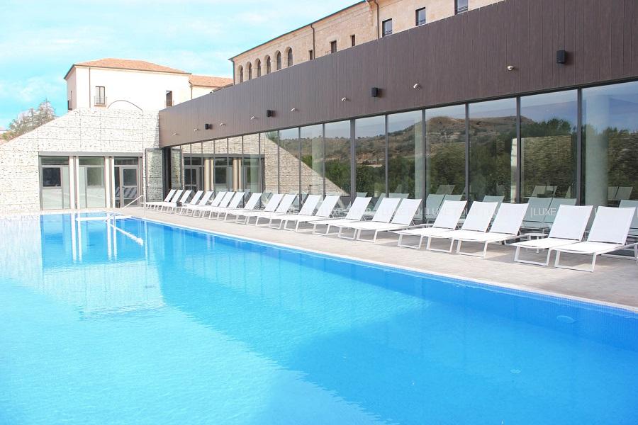 В самом сердце знаменитого винодельческого региона Рибера-дель-Дуэро, на территории прекрасно сохранившегося цистерцианского монастыря XII века находится уникальный отель Castilla Termal Monastery de Valbuena. Сегодня под готическими сводами старинных зданий с каменными стенами, аркадами и галереями располагаются элегантные комфортабельные номера, гастрономический ресторан, уютное кафе и великолепный Spa-комплекс площадью более 2000 м2 – с термальными бассейнами и гидротерапевтической зоной, разместившейся в часовне XIII века. А целебная вода в термальный комплекс поступает из местного минерального источника, бьющего из глубины 386 м. Также в отеле имеются собственные виноградники, винодельня, где производится монастырское вино Converso, и винный погреб, где устраиваются дегустации лучших вин региона. Castilla Termal Monastery de Valbuena сочетает современный сервис, очарование старины и пасторальную атмосферу Рибера-дель-Дуэро.