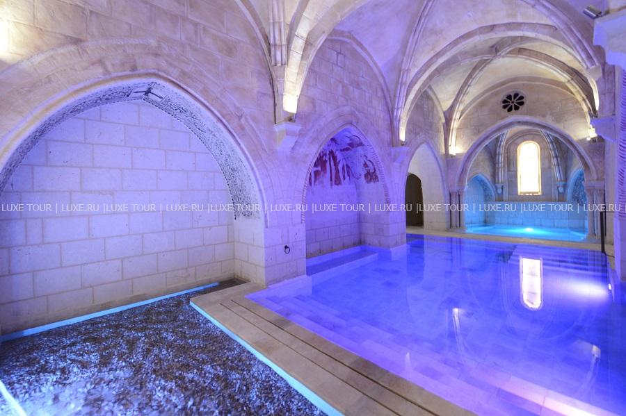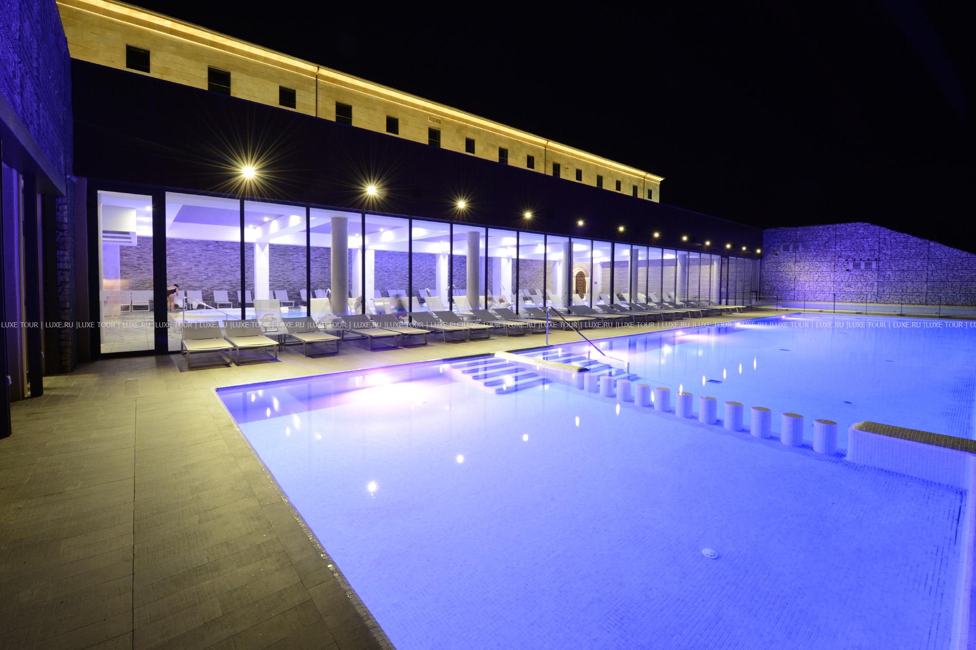Отель располагает первоклассным Spa-комплексом, где на площади 2000 м2 находятся: открытый бассейн и крытый термальный бассейн с целебной водой из местных источников (32-34°C) и гидромассажными зонами, секция гидротерапии «Контрастный круг» в готической часовне Сан-Педро (сауна, хаммам, купели с горячей и холодной водой, гидромассажная ванна для ног, термальные души, ледяной фонтан и комната отдыха с камином и чайным уголком), салон красоты, фитнес-центр и 16 процедурных кабинетов. В комплексе предложен широкий спектр услуг – от массажей, косметологических и спа-процедур до гидротерапевтических и лечебно-оздоровительных процедур и программ разной направленности и длительностью 2-14 дней.