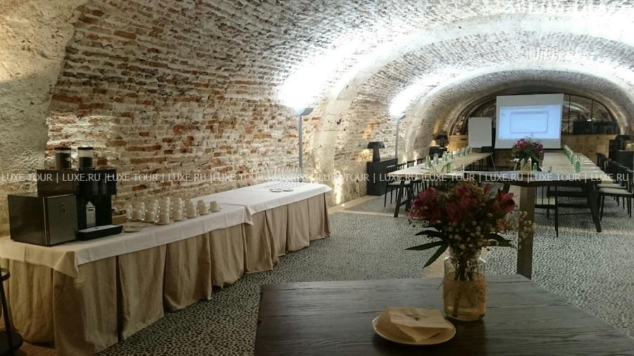 - Ресторан a la carte Converso, расположенный в элегантном историческом зале, предлагает блюда, сочетающие традиционную и современную региональную кухню и приготовленные из отборных местных продуктов, в том числе – из органического сада отеля.