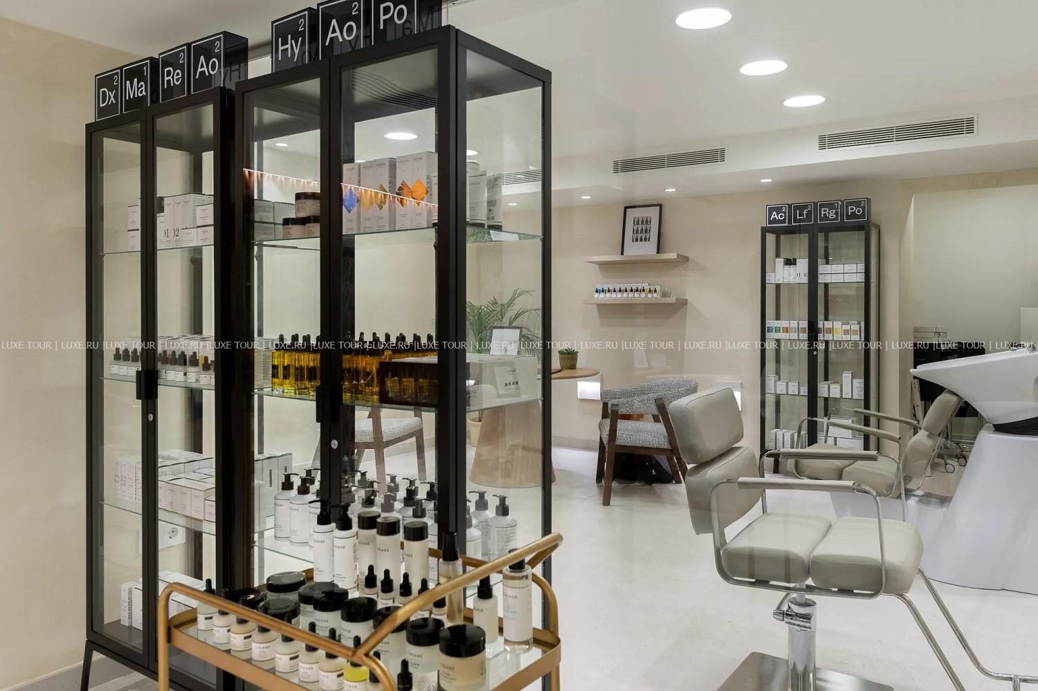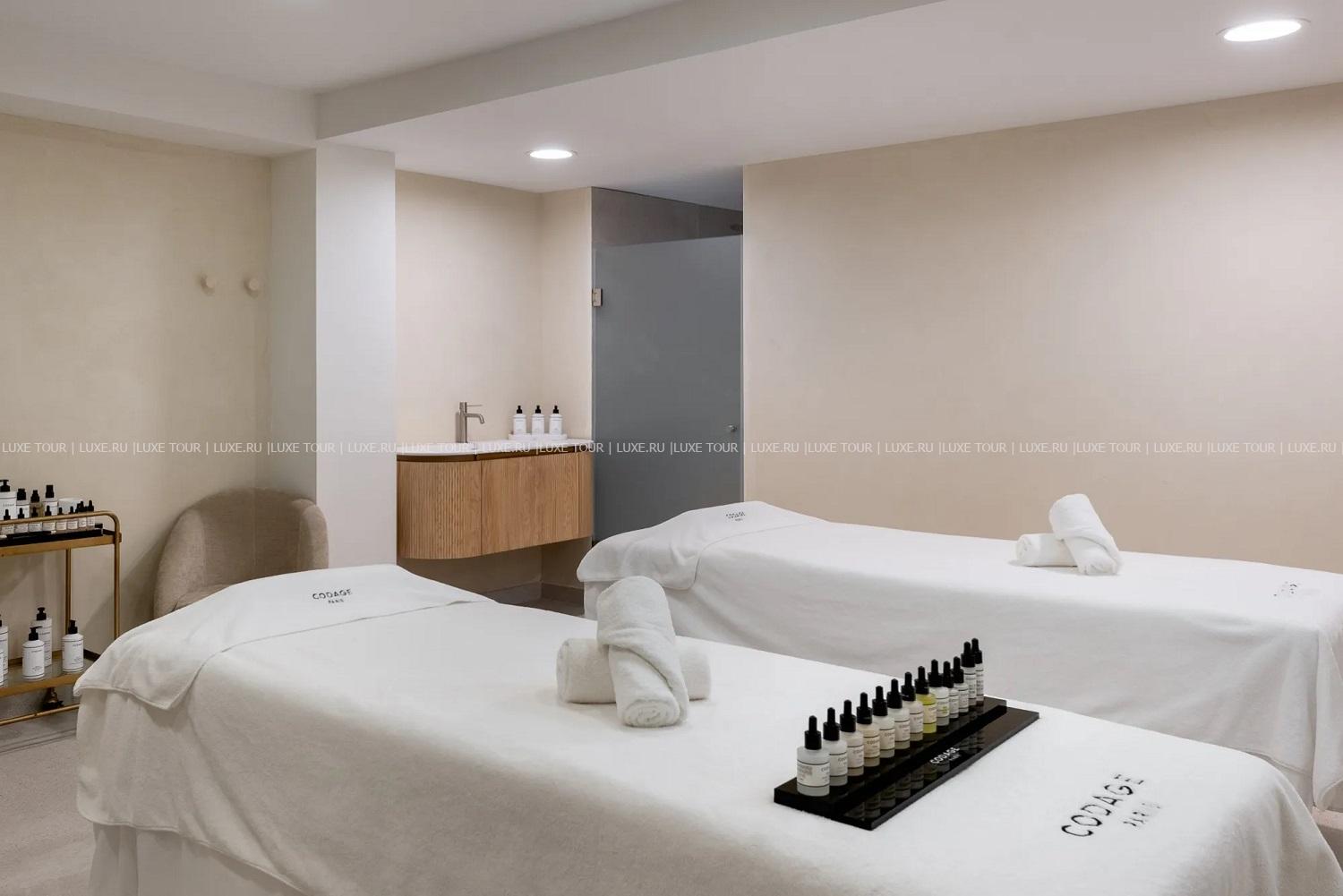 Отель располагает великолепным Spa-центром, в котором имеются: крытый подогреваемый бассейн с морской водой и гидромассажем, сауна, хаммам, купель с холодной водой, ванна для ног, сенсорные души, зона отдыха и 5 процедурных кабинетов, где предложен широкий спектр услуг по уходу за телом и лицом с эксклюзивными косметическими средствами Codage Paris.