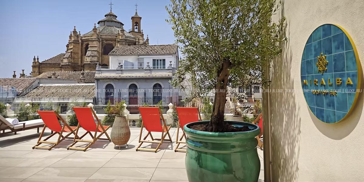 - В баре на крыше Miralba можно отдохнуть за коктейлем или бокалом вина, любуясь потрясающим панорамным видом на Гранадский собор и Альгамбру.