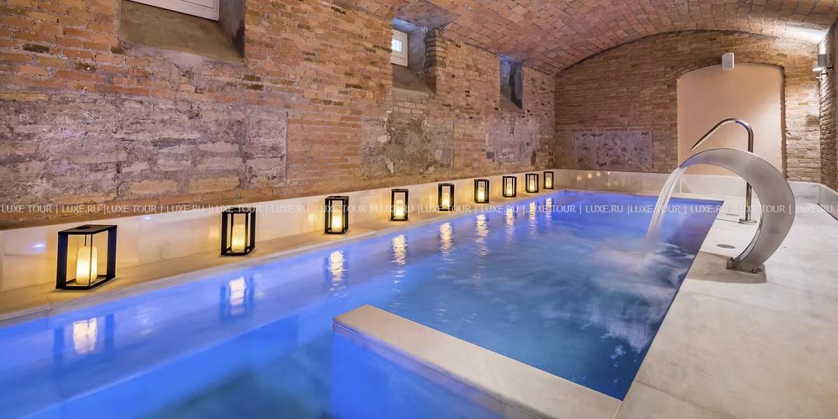 В отеле имеется крытый бассейн с подогревом и водопадом, расположенный под старинными сводами в Spa-центре.