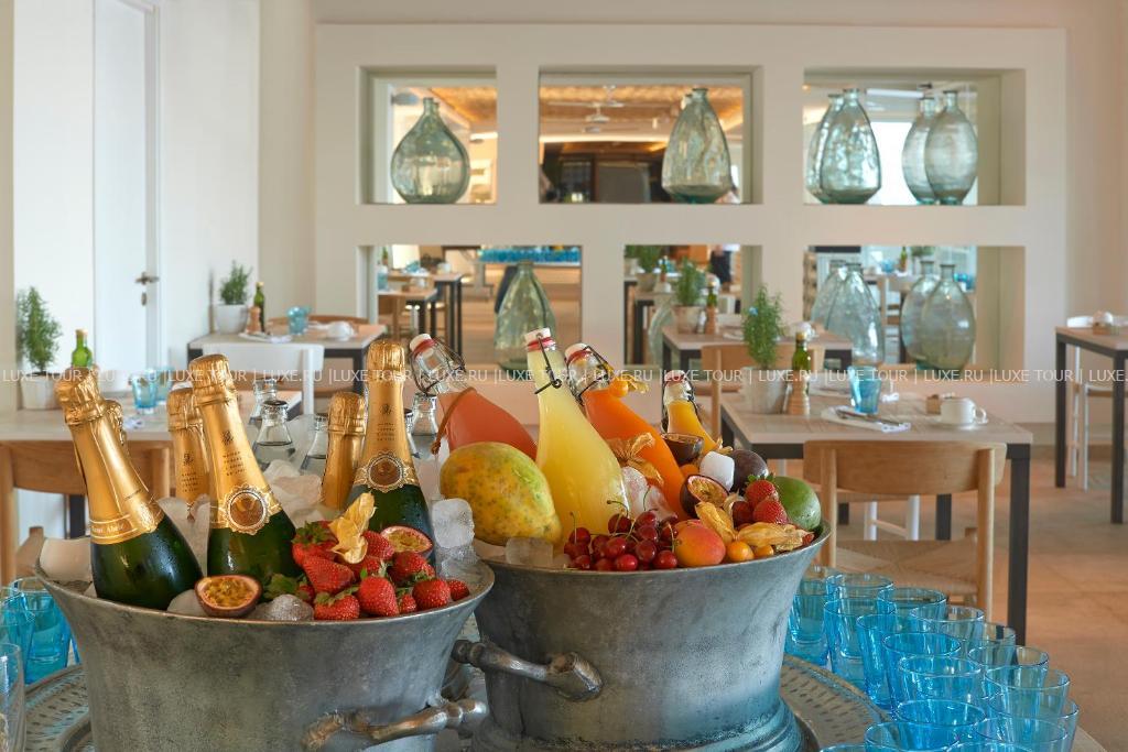 - Предлагаются шампанское и освежающие напитки на террасе у бассейна.