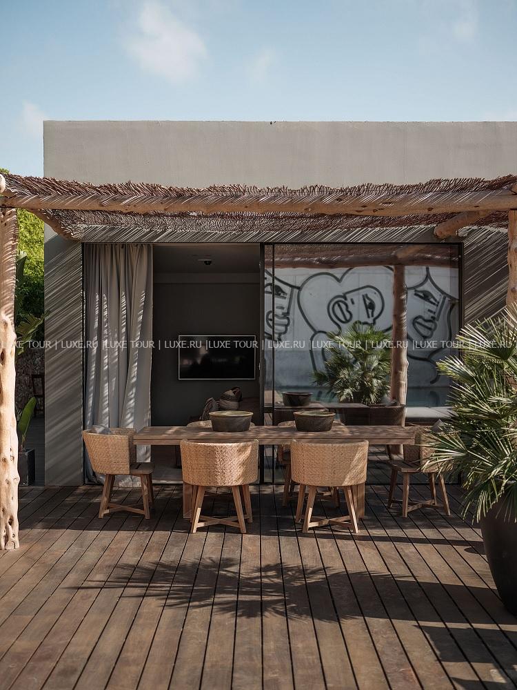 Рядом с бирюзовыми водами бухты Кала Грасио, среди тропической зелени и тенистых пальм расположен OKU Ibiza, идеально вписанный в живописные ландшафты Белого острова. Лаконичная архитектура, фасады с деревянными экранами, оригинальный дизайн номеров с отделкой из ротанга и мореного дуба, плавный переход между внутренним и внешним пространством – все в бутик-отеле вдохновлено единением с природой. При этом, гостей ждет весь спектр высококлассных услуг – от манящего 50-метрового бассейна, эксклюзивных спа-процедур, утренней йоги и разнообразия активностей в течение дня до изысканных ужинов в гастрономическом ресторане, коктейлей на закате и зажигательных вечеринок под хиты от ди-джеев. OKU Ibiza - райский уголок с космополитичной и богемной атмосферой Ибицы.