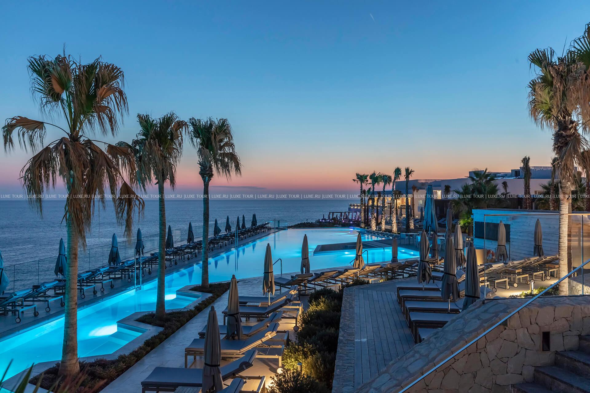На территории отеля находятся 2 бассейна, включая большой панорамный бассейн, а также открытая джакузи.