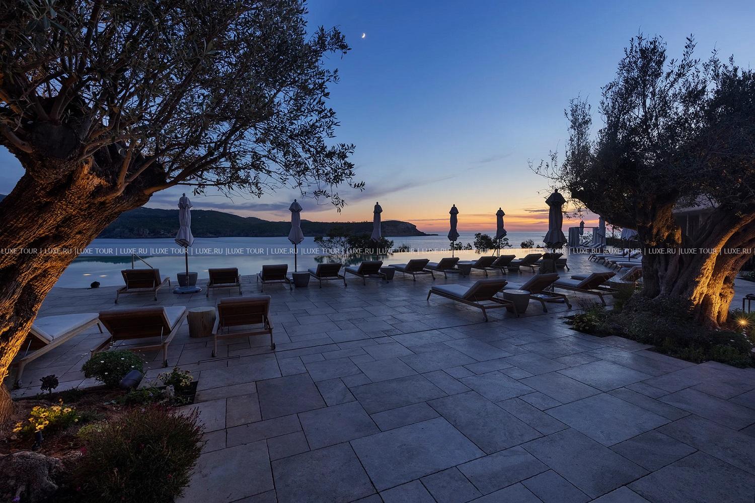 В отеле имеется открытый бассейн с панорамным видом на море.