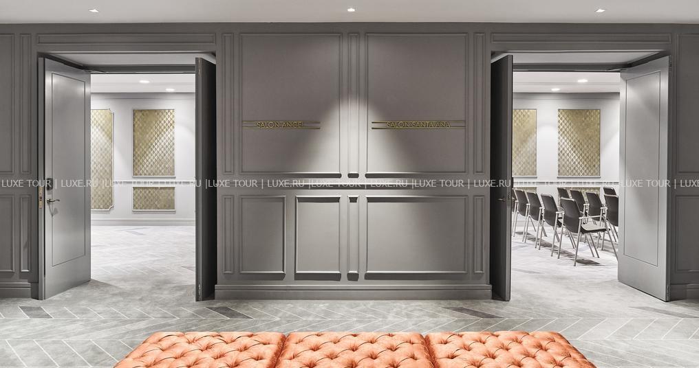 Для гостей – 2 конференц-зала общей площадью 90 м2, 2 зала для частных банкетов, библиотека с камином и интерьерами XIX в., бизнес-сервис, Wi-Fi, парковка, услуги консьержа, услуги прачечной.