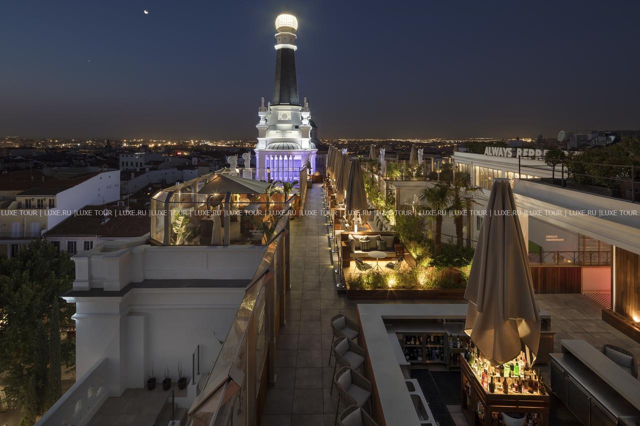 • Бар Radio- cамая гламурная и ослепительно атмосфера в Мадриде теперь находится на крышe, эксклюзивный бар на террасе на крыше отеля Madrid МЕ на площади Санта-Ана. С великолепным панорамным видом на город, крыша предлагает возможность отдохнуть под звездами с прохладительными напитками, и просто наслаждаться музыкой или попробовать вкусный ужин на террасе.