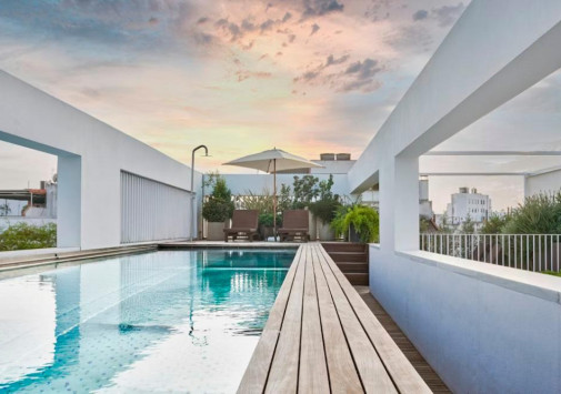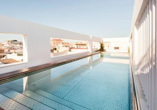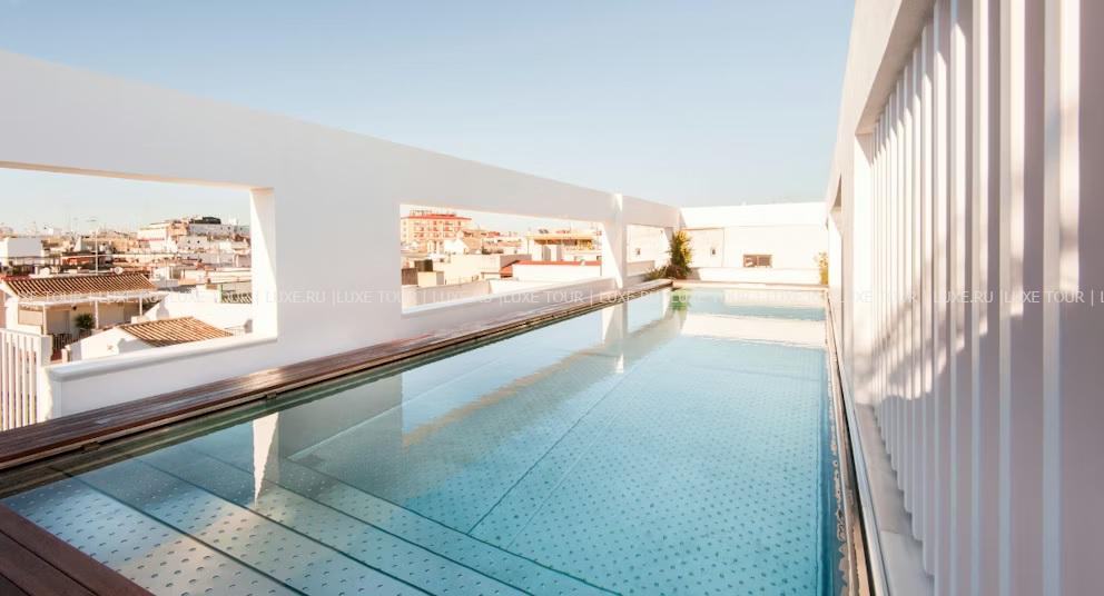 - На террасе у бассейна на крыше можно отдохнуть за освежающим коктейлем или бокалом вина, любуясь панорамным видом на Севилью.