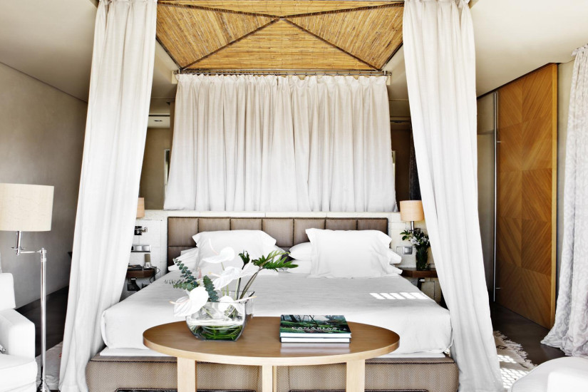 - 170 м2 + терраса 86 м2. Элегантная двухуровневая вилла, декорированная изысканным текстилем и марокканскими коврами, включает гостиную зону с полностью оборудованной мини-кухней - на 1 этаже, на 2 этаже: спальню с кроватью под балдахином с видом на океан и сад отеля, ванную комнату, отделанную базальтовым камнем, а также террасу с садом, обеденной зоной, зоной отдыха и панорамным подогреваемым бассейном. Максимальное размещение — 3 взрослых.