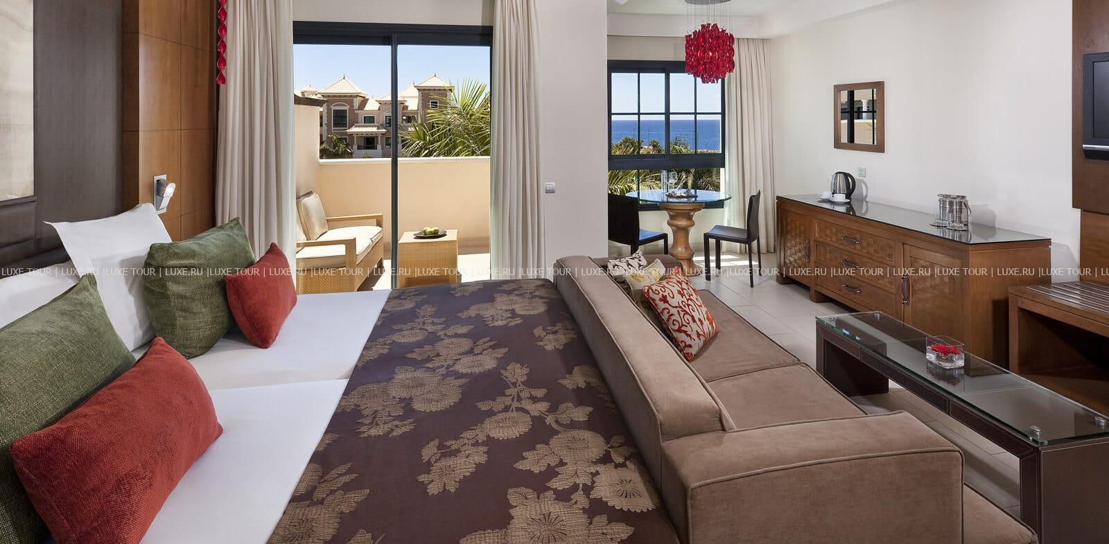 Gran Meliá Palacio de Isora – курортный комплекс, расположенный на обширной прибрежной территории Guía de Isora, среди пышной зелени садов, у белоснежного пляжа, омываемого теплыми водами Атлантического океана, и просторного лазурного бассейна-лагуны. Нарядные здания комплекса построены в традиционном средиземноморском стиле и украшены лепниной, изящными колоннами и башенками. Интерьеры номеров, оборудованных по последнему слову техники, отличаются изысканным дизайном: оригинальное освещение и необычные цветовые решения, элегантная мебель из красного дерева, произведения искусства современных авторов. Для гостей, привыкших к особому уровню комфорта есть клубные номера "RedLevel", размещение в которых предполагает набор привилегированных услуг клуба, включающий услуги персонального дворецкого, доступ к частному бассейну клуба, доступ в клубную гостиную, где сервируется завтрак в стиле "шведский стол", а вода, кофе, чай и легкие закуски предлагаются гостям в течение дня, вечером здесь работает бар.