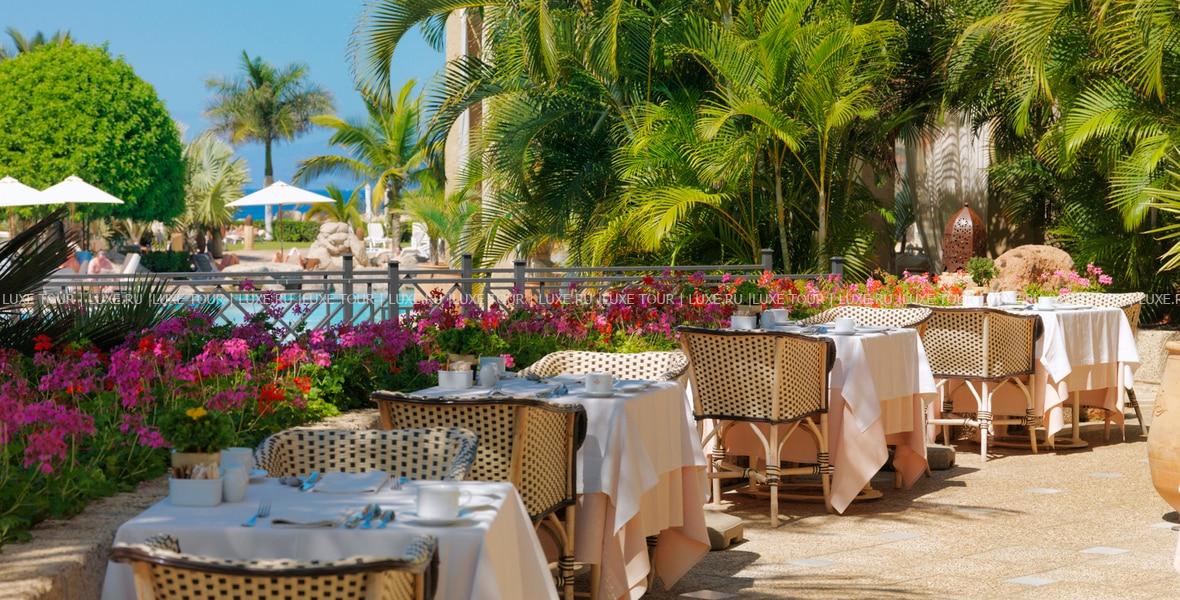 - Ресторан La Pergola, расположенный на террасе у бассейна, предлагает широкий выбор отменных средиземноморских блюд, включая деликатесы из рыбы и морепродуктов, а также тапасы, салаты и другие легкие закуски.