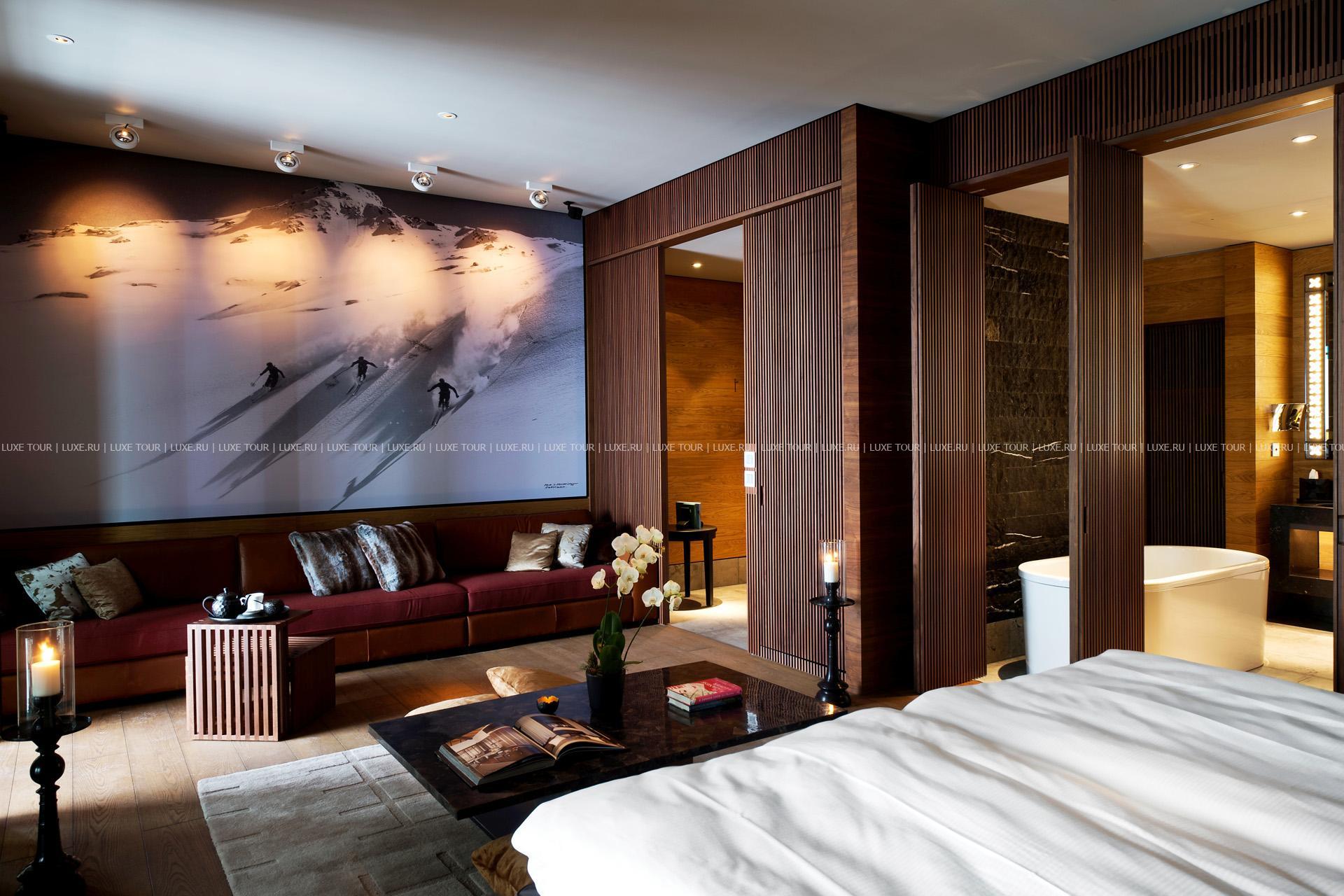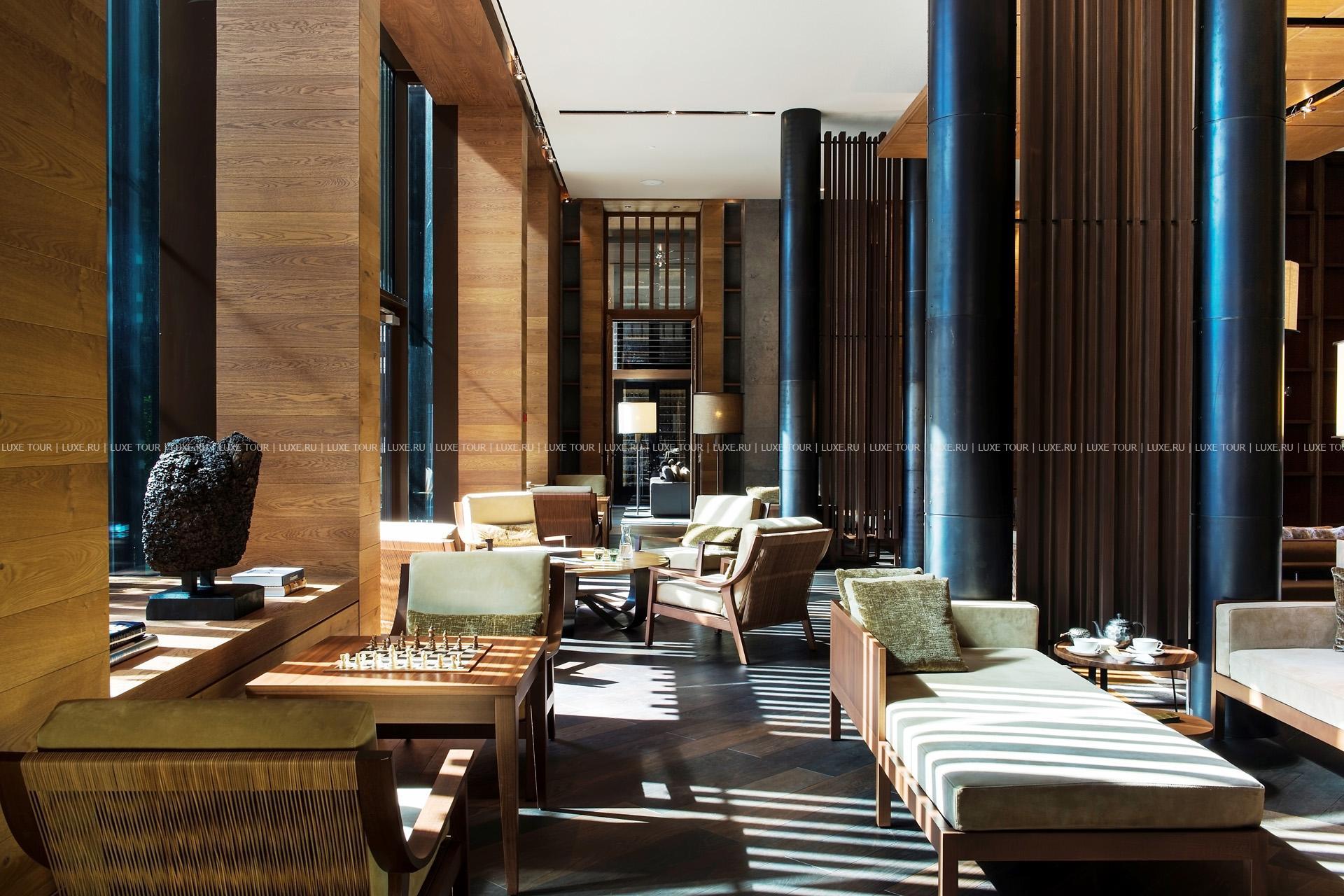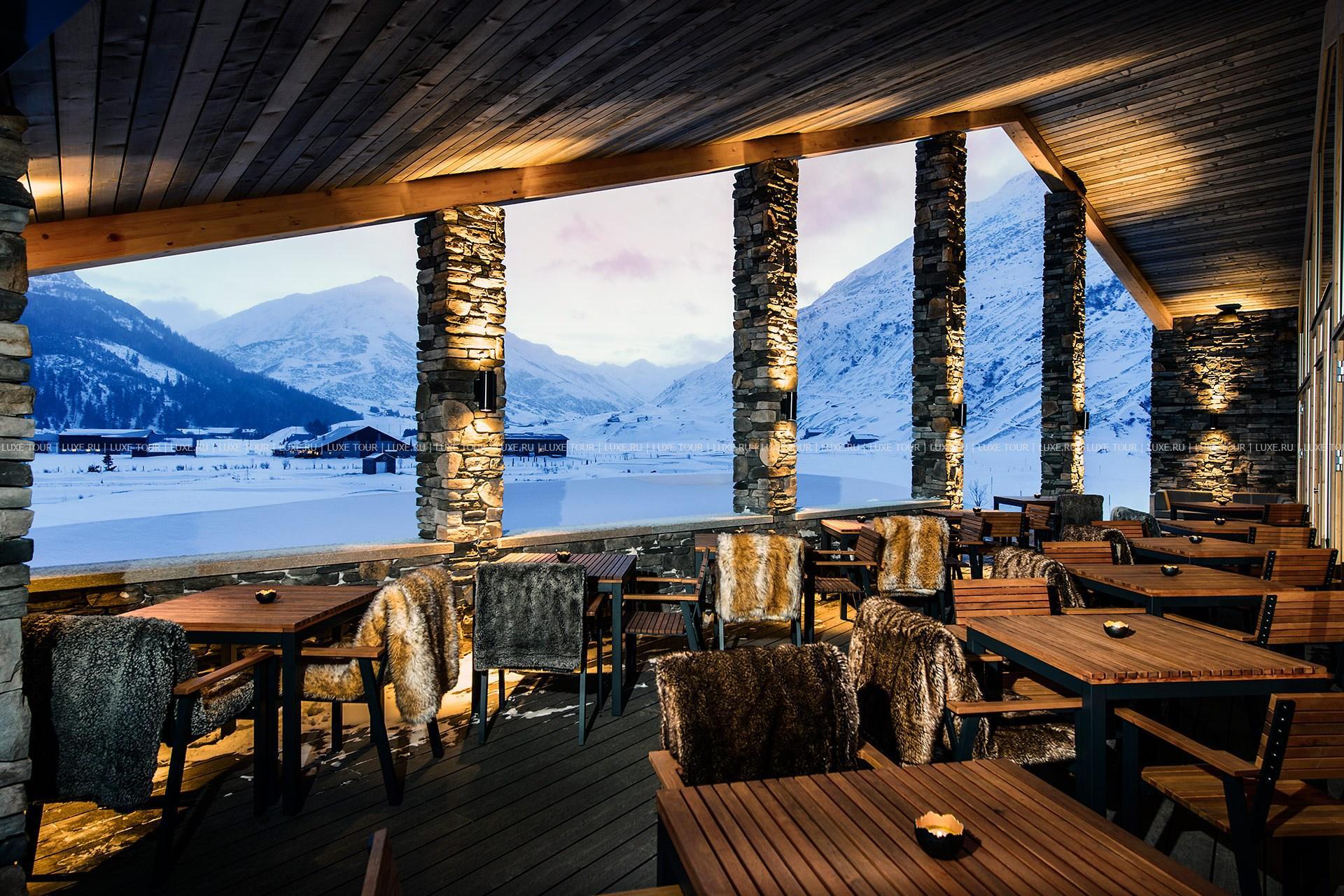 - Внутренний дворик отеля The Courtyard выполняет роль гостиной под открытым небом. Зимой здесь можно согреться традиционным швейцарским кофе и фирменным горячим пуншем, а также заказать легкие закуски у барной стойки. С приходом лета гостей ждут прохладительные коктейли в тени горы Гемсток на фоне восхитительных альпийских пейзажей.