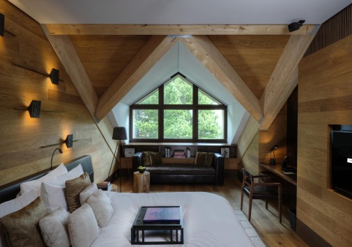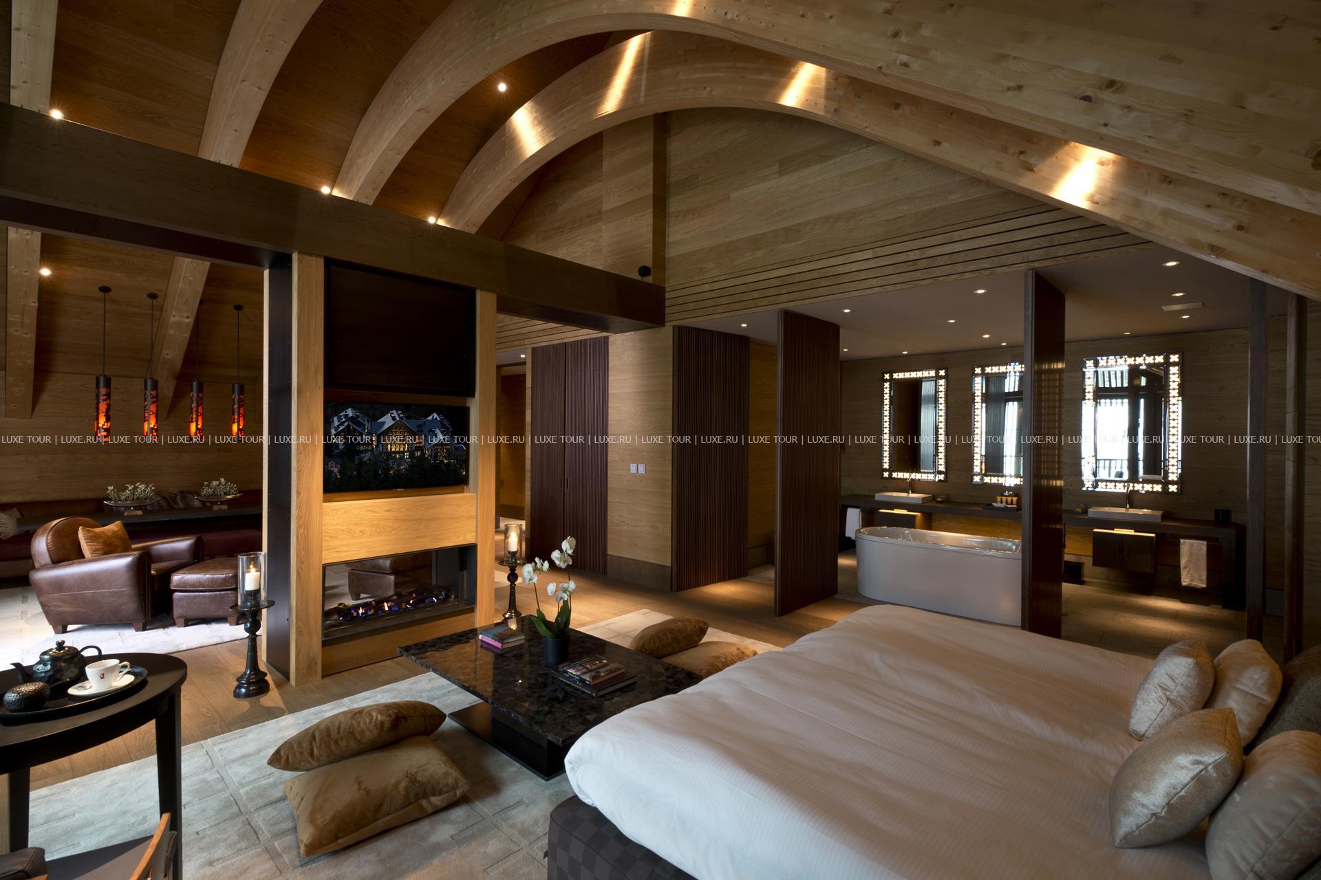 - Ресторан The Chalet, оформленный в традиционном швейцарском стиле с бревенчатыми стенами и скатертями в красную и белую клетку, располагается во дворе отеля и предлагает гостям насладиться классическими швейцарскими блюдами, такими как раклет в сочетании с лучшими европейскими винами. В зимнее время гости могут отведать фирменное фондю с трюфелями от шеф-повара. Часы работы: с 18:00 до 22:00. В зимний сезон ресторан открыт по пятницам, субботам и воскресеньям, ежедневно - лишь в пиковый сезон (даты варьируются). Дресс-код: smart casual.