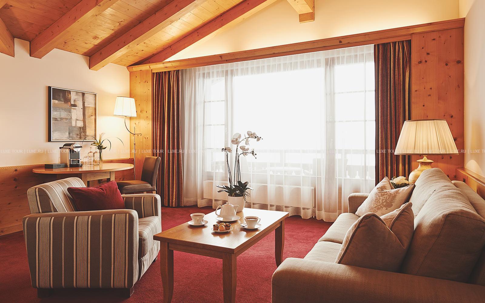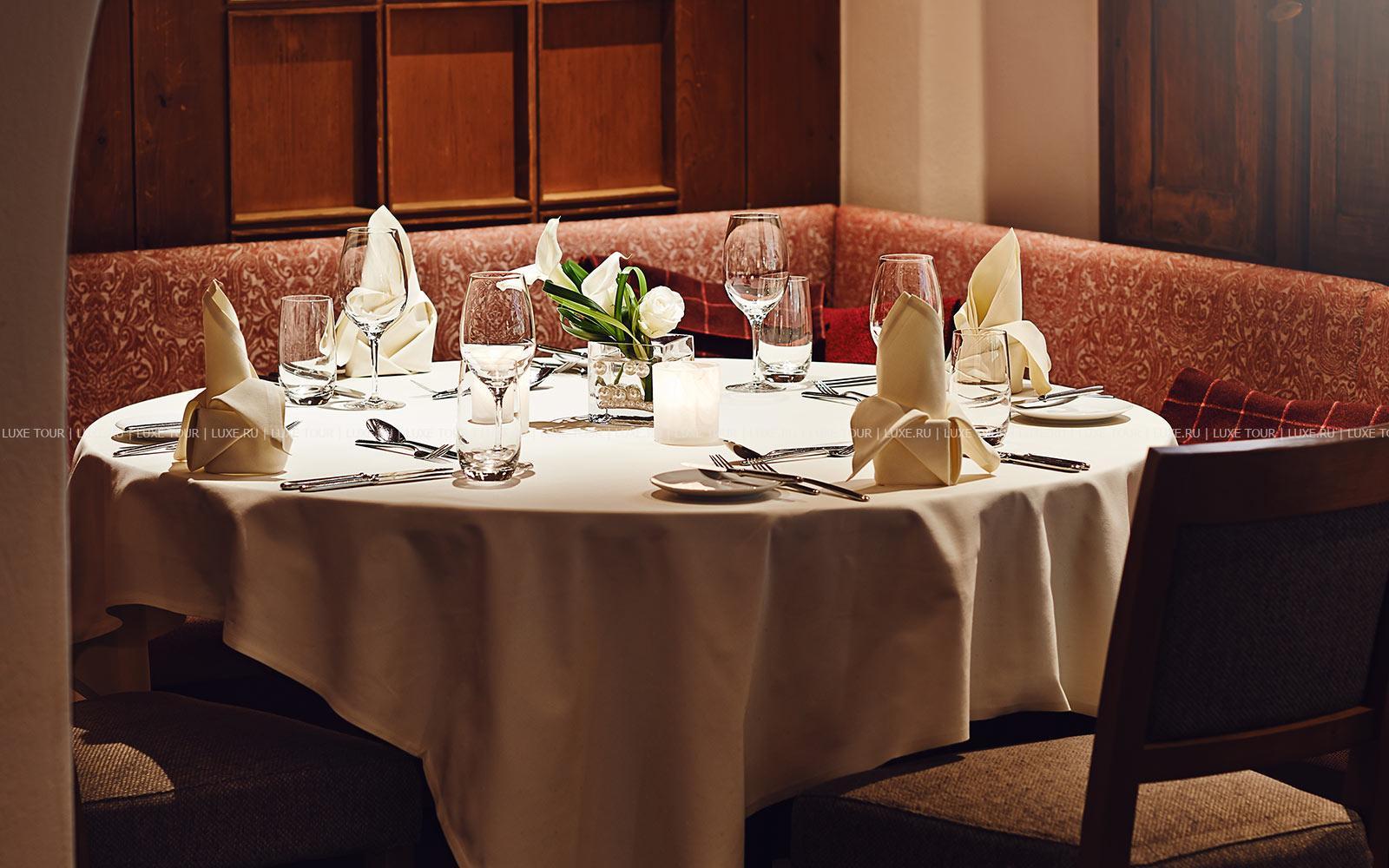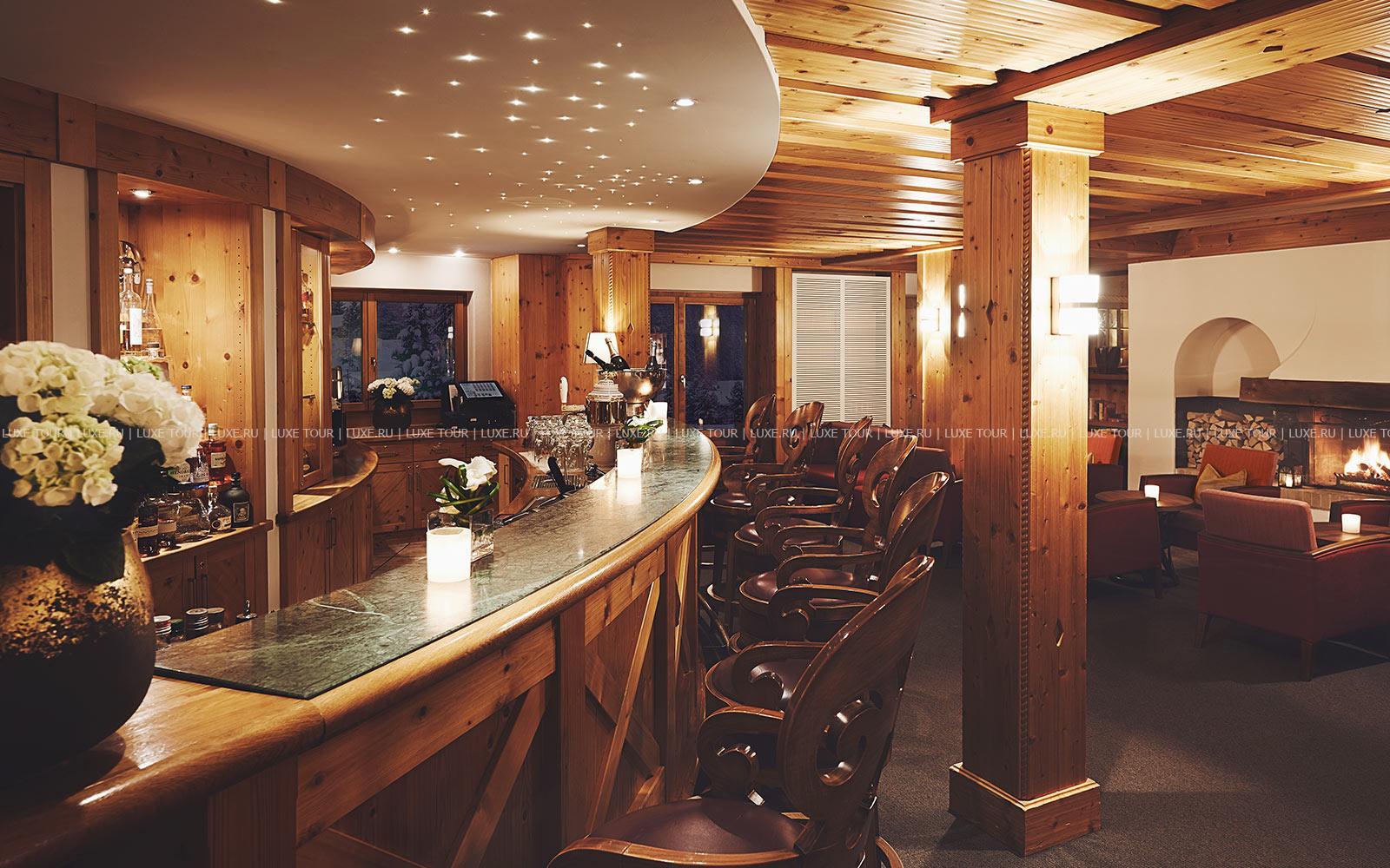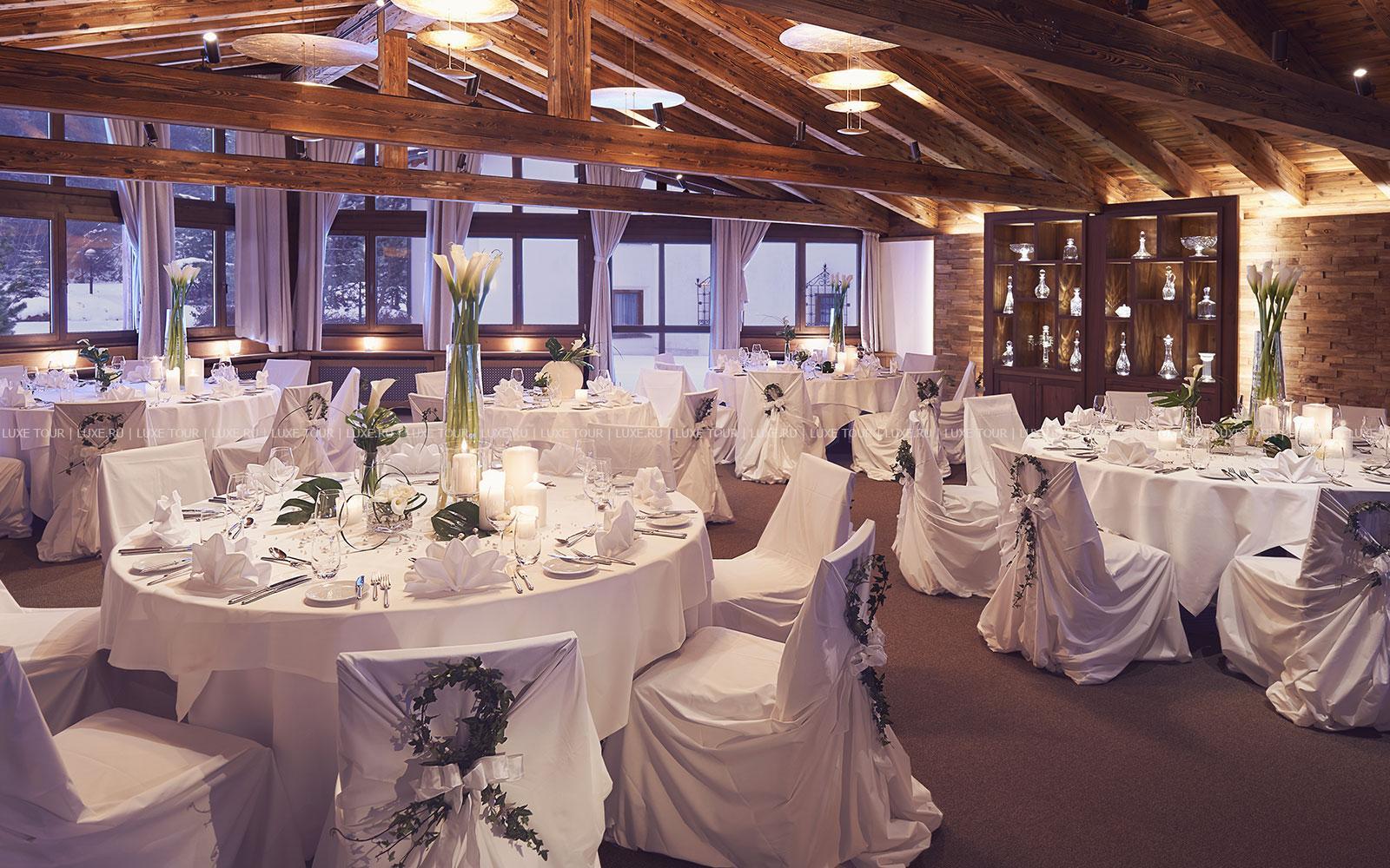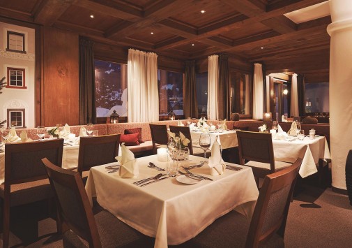 - Ресторан Waldhuus, выполненный в альпийском стиле – с отделкой из резной швейцарской сосны, предлагает деликатесы интернациональной и региональной кухни, приготовленные из отборных местных продуктов, а также богатую карту изысканных вин. Летом вкусными блюдами и винами можно насладиться на открытой террасе с панорамным видом.