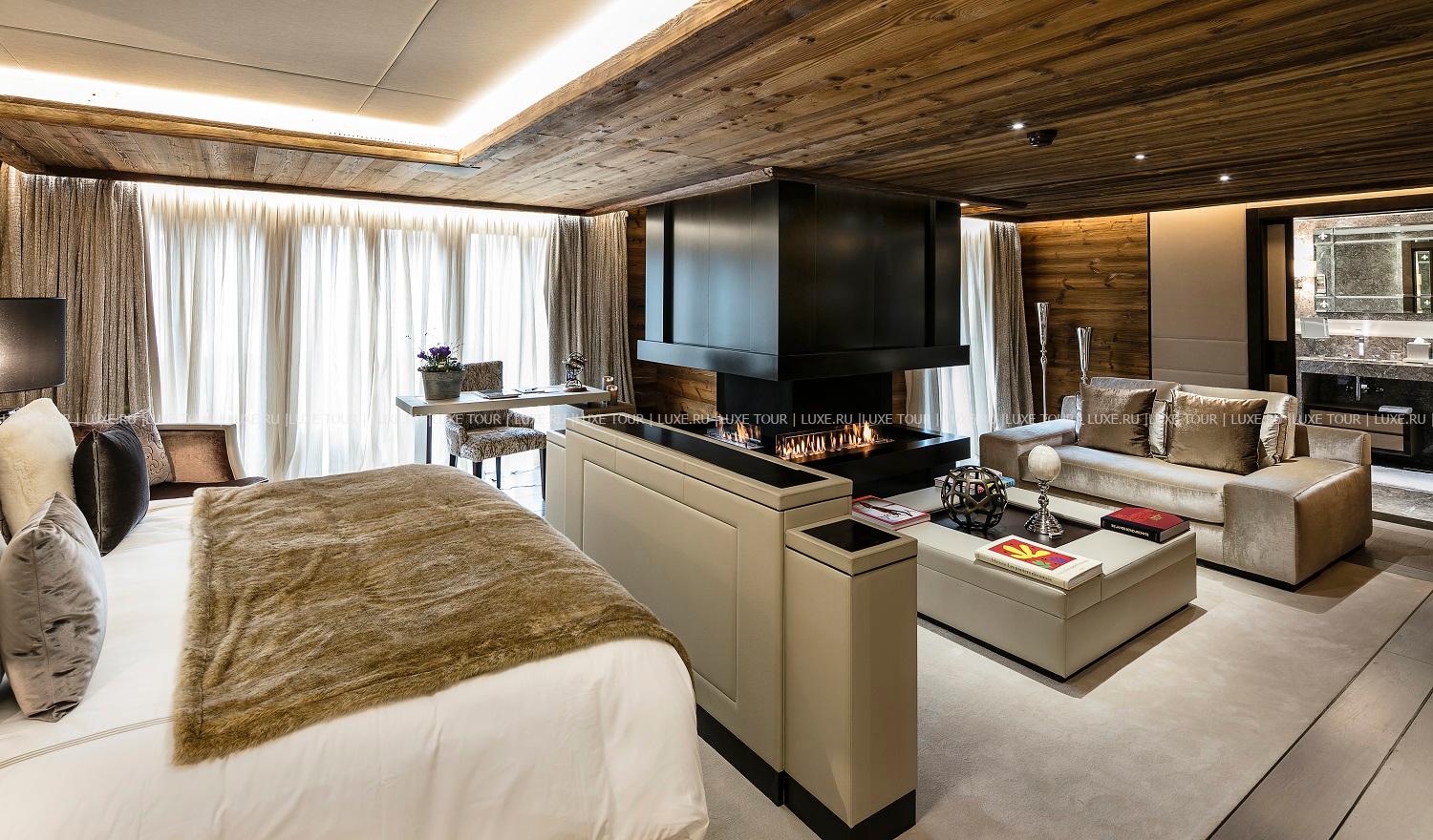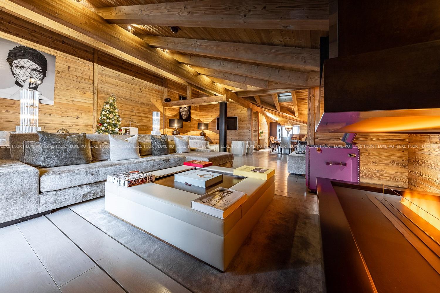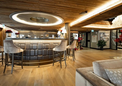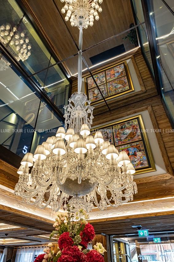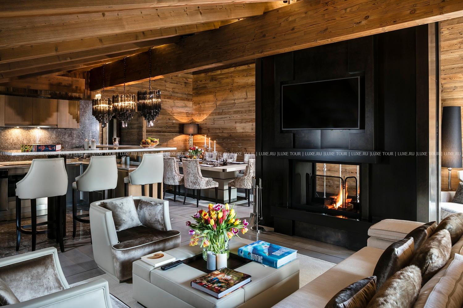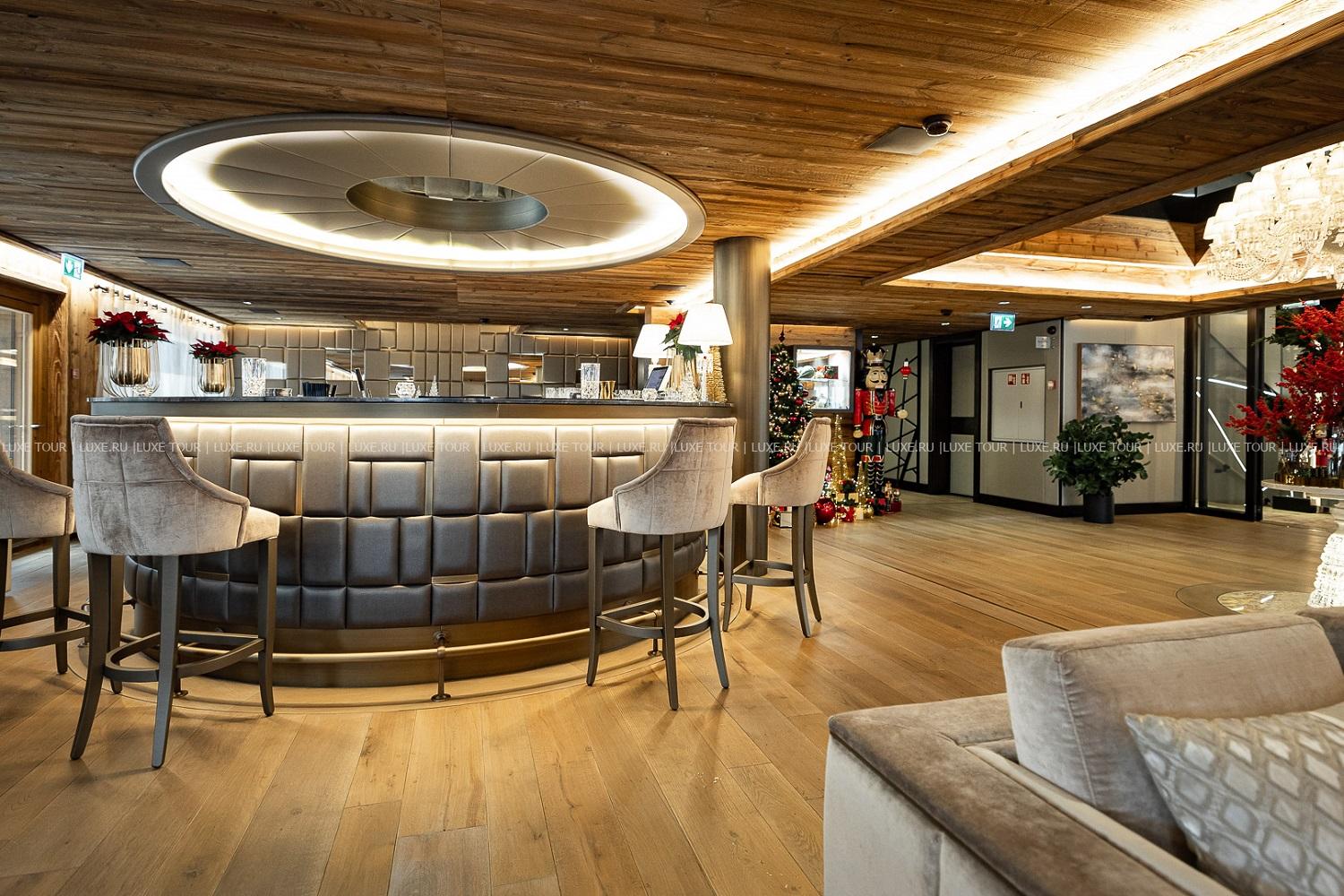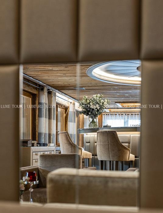 - Стильный лобби-бар с камином и большая открытая терраса с видом на горы – идеальное место для отдыха après-ski.