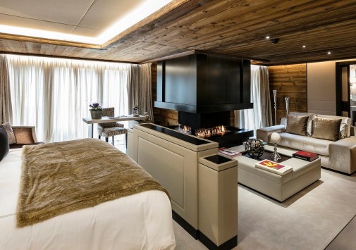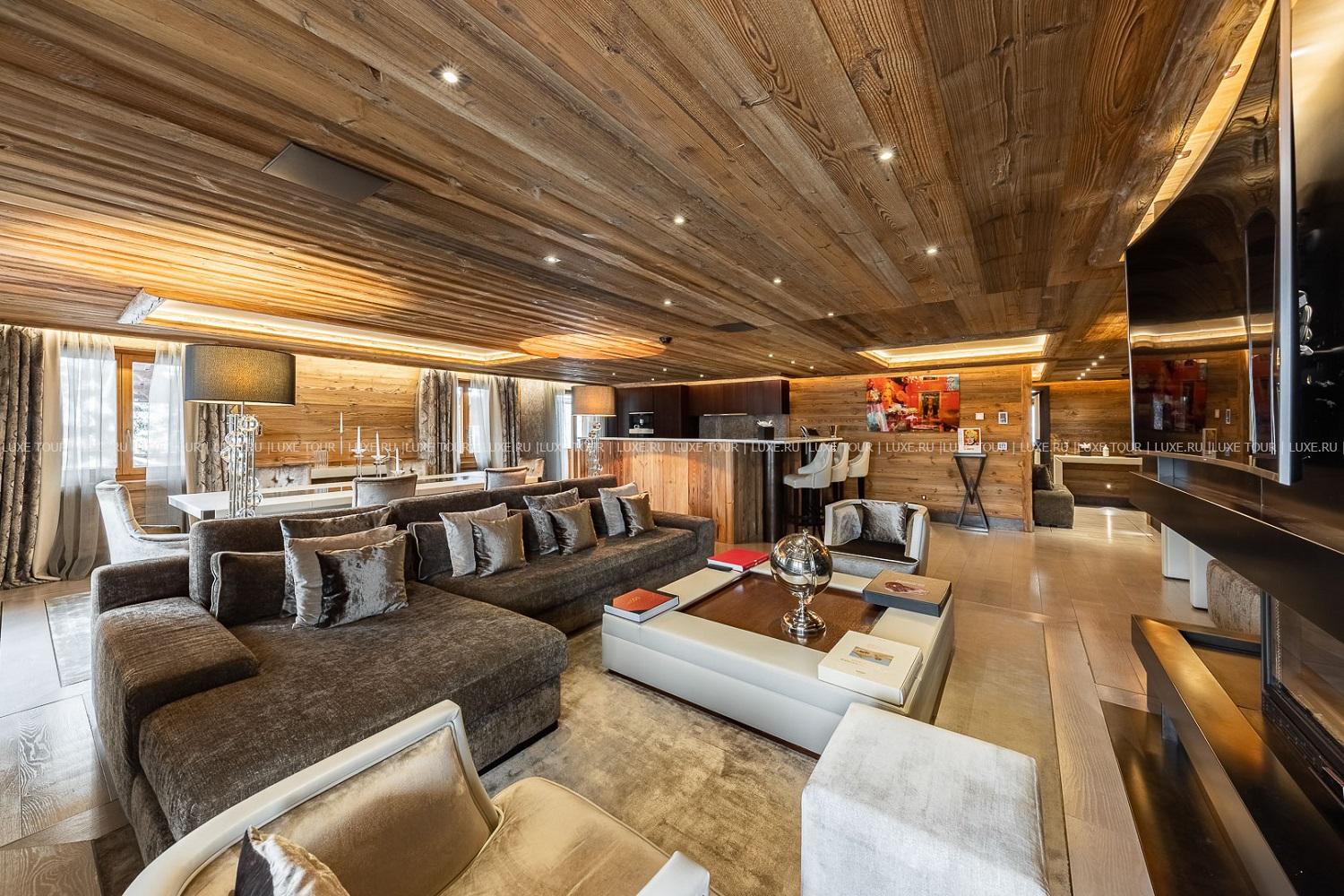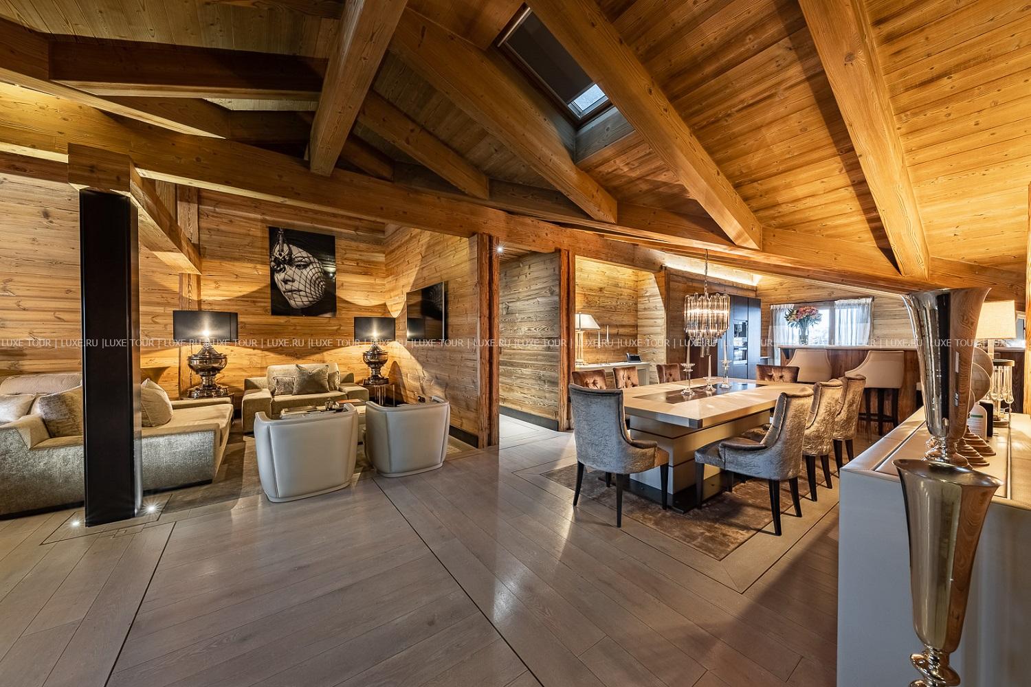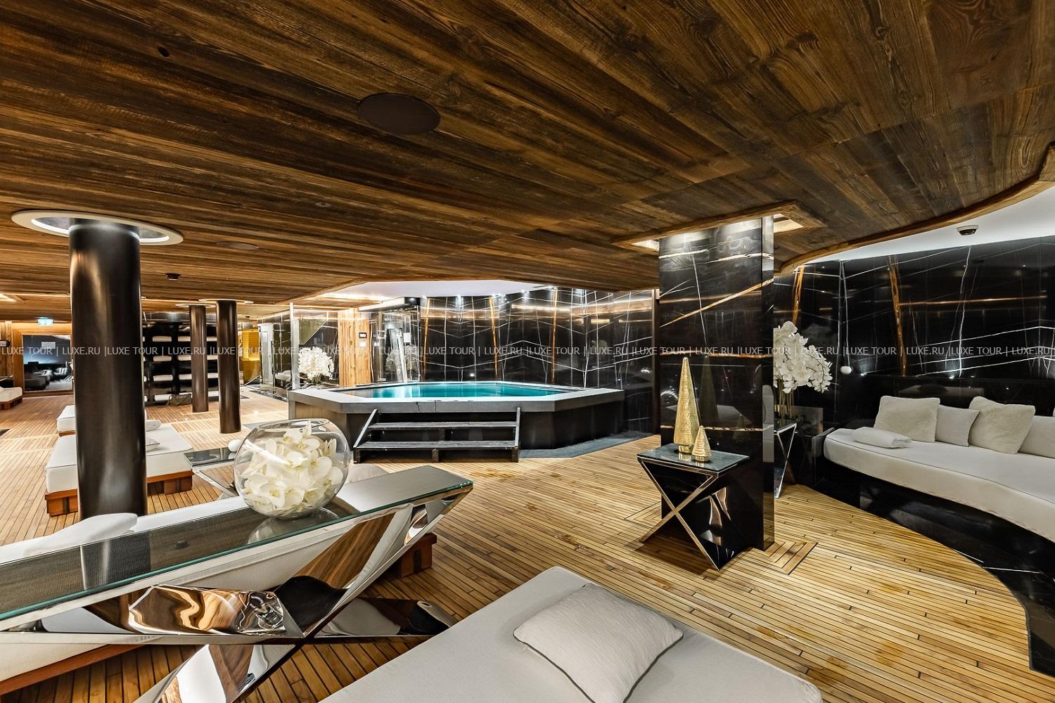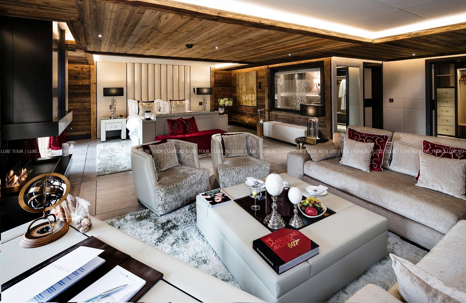 - Стильный лобби-бар с камином и большая открытая терраса с видом на горы – идеальное место для отдыха après-ski.