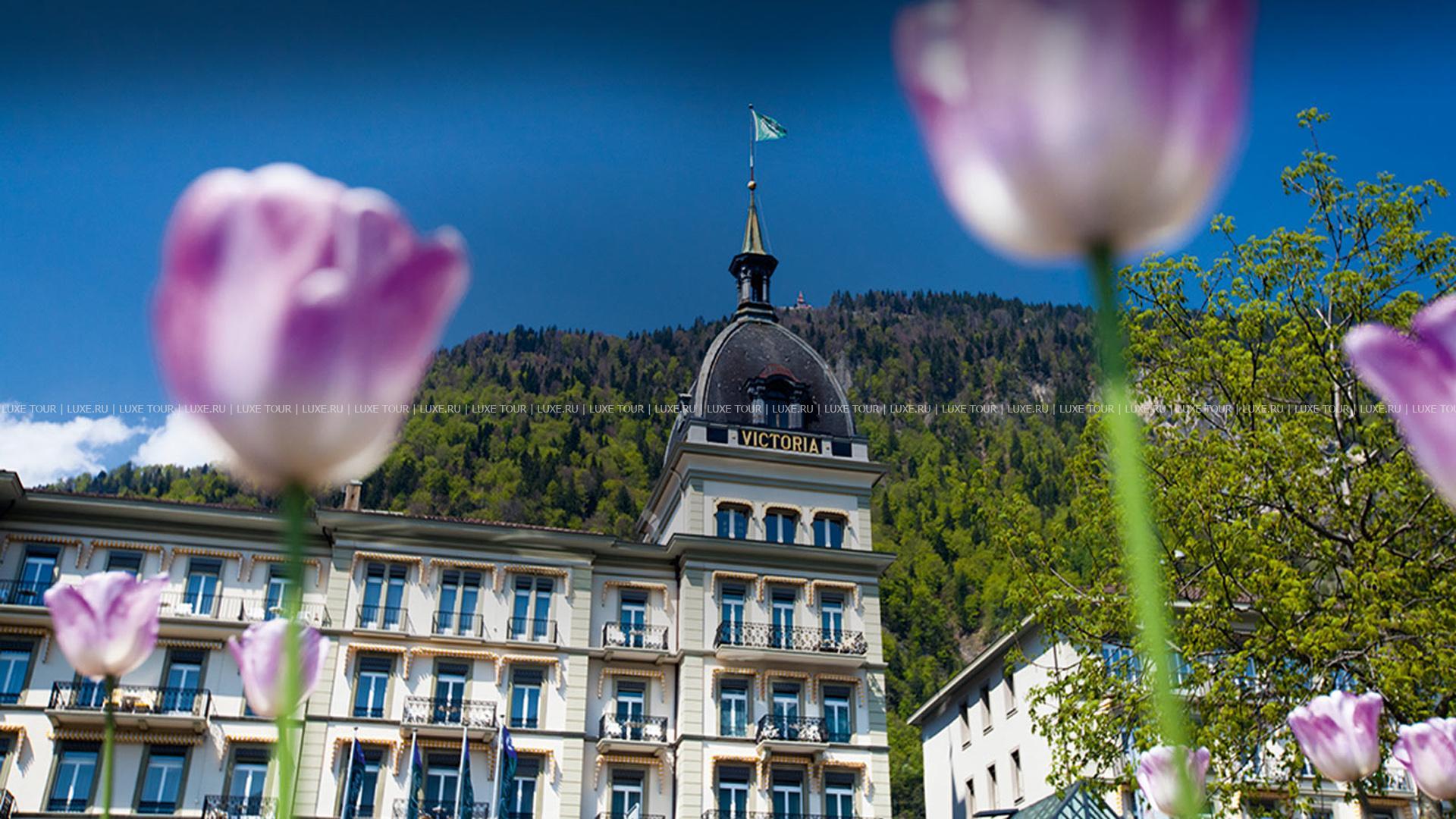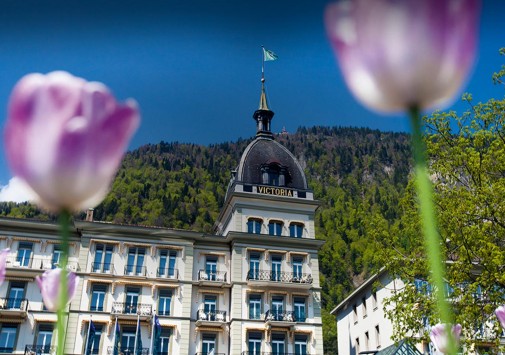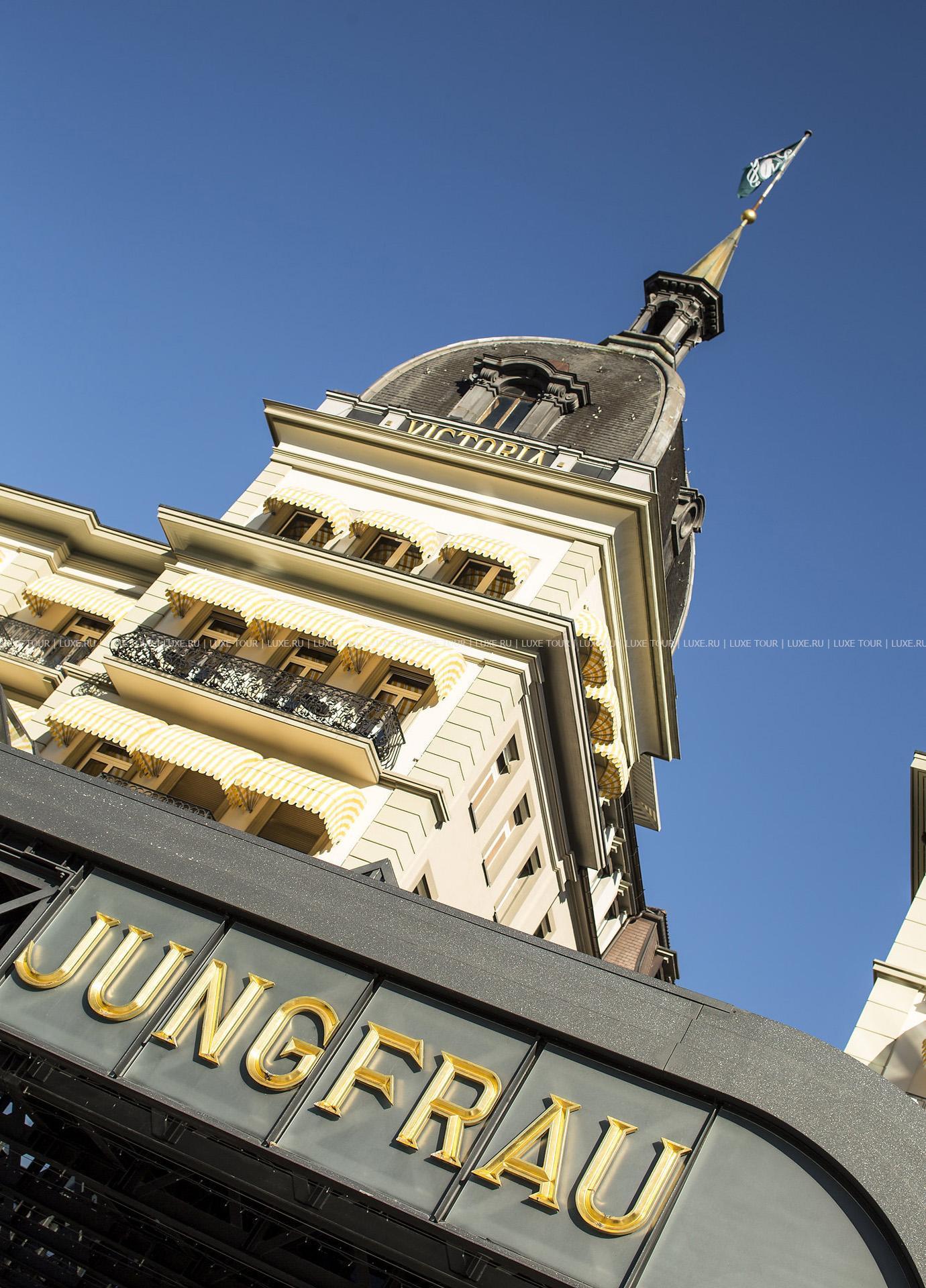 Отель расположен в тихом районе в центре городка Интерлакен, в 2 часах от международного аэропорта Цюриха, в 2,5 часах от международного аэропорта Женевы. Отель Victoria-Jungfrau Grand Hotel & Spa вполне оправдано считается одним из ведущих пятизвездочных отелей в Интерлакене, в 2007 году удостоившимся наград как «лучший спа-отель» от GEO SAISON, названный читателями Condé Nast Traveller «лучшим не-американским спа-отелем», а также отмеченный GALA SPA Award. Идеальные альпийские пейзажи Интерлакена, круглогодичного курорта, известного во всем мире как одно из наиболее привлекательных мест для отдыха в Швейцарии, служат чудесным обрамлением эффектному фасаду здания, возведенного еще в 1865 году. Неотразимое очарование уютного провинциального городка с традиционными домиками и узкими улочками, примостившегося у подножия нависающих вершин Eiger, Mönch и Jungfrau, заповедные красоты упоительной долины, живописные луга, серебристая гладь местных озер, шепчущие водопады и стремительные потоки будто бы делают классический особняк с миниатюрными балкончиками, эффектным шпилем и искусными декоративными узорами гармоничной частью общего чарующего ансамбля. Внутри гостям открывается сочетающаяся с великолепием пейзажей удивительная атмосфера, созданная мастерским объединением старинных традиций и современных веяний гостиничного искусства. Широчайший диапазон цветовой гаммы и богатство форм, отражающиеся в роскошных тканях и материалах, подчеркивают индивидуальный стиль каждого номера. А открывающееся виды на заснеженные вершины массива Jungfrau или на вершину горы Хардер дополняют этот колоритный облик.