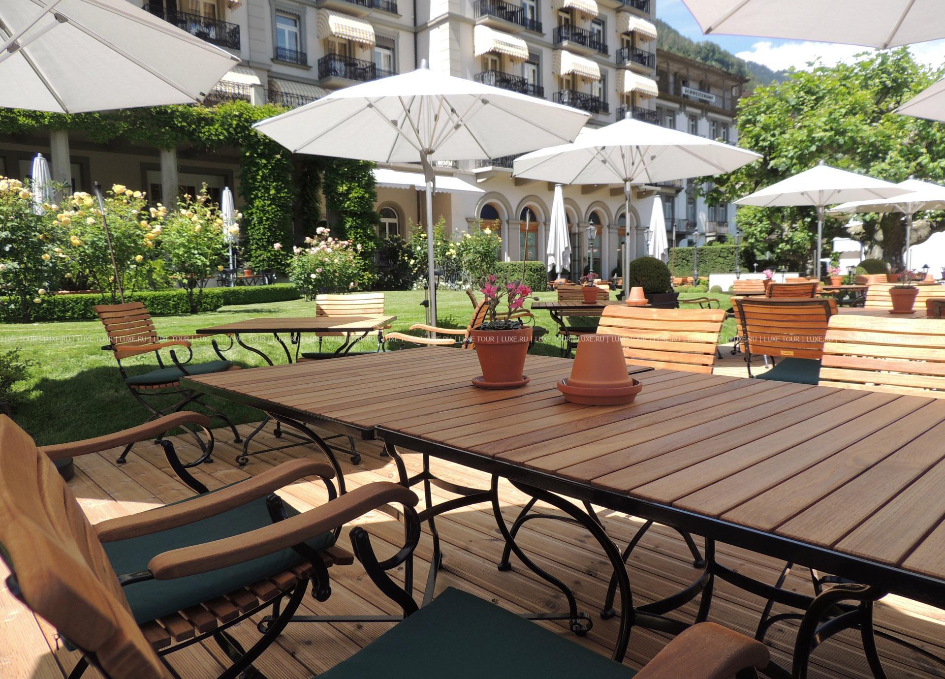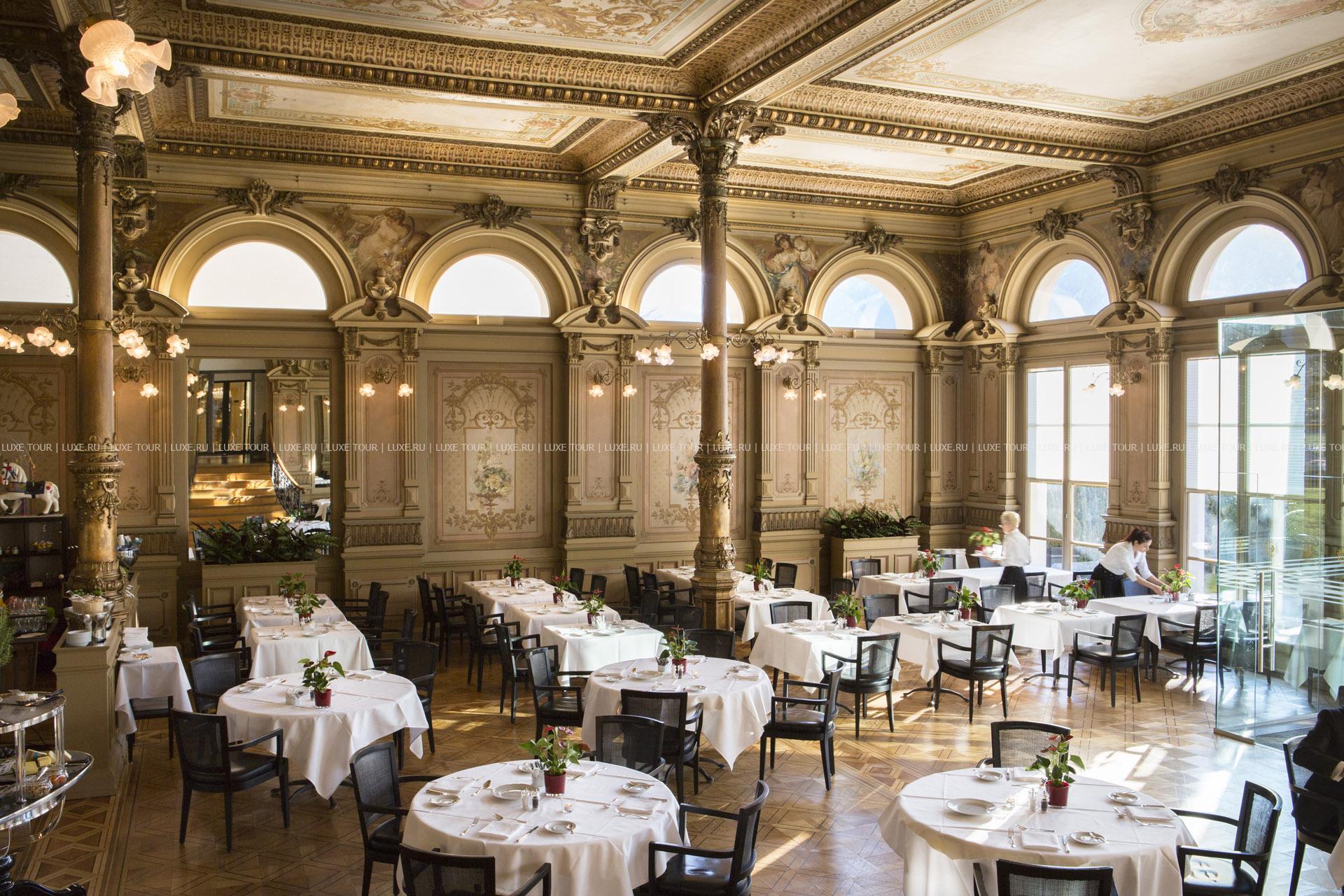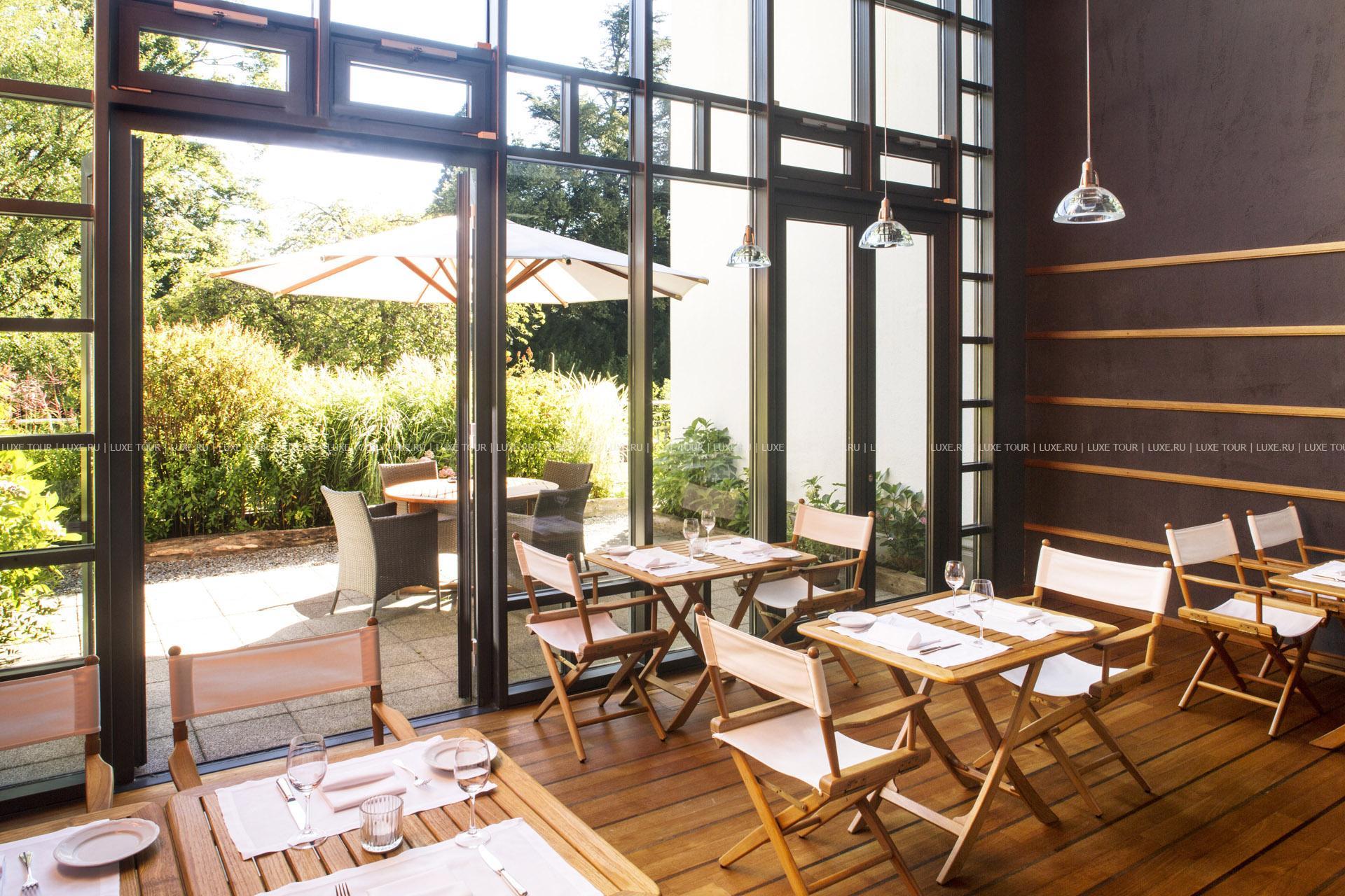 - Ресторан La Terrasse (удостоенный 16 пунктов Gault Millau) напоминает оранжерею на юге Франции. Сезонные меню созданы шеф-поваром Стефаном Бииром. Он готовит креативные блюда, где особое внимание уделяется продуктам от местных поставщиков
