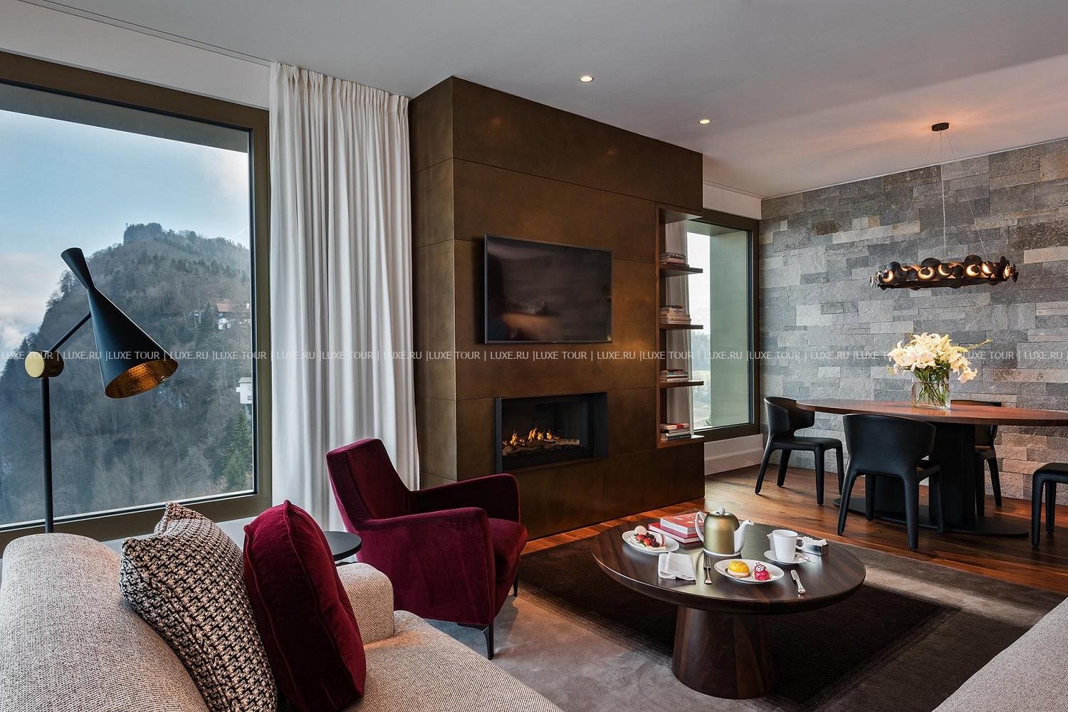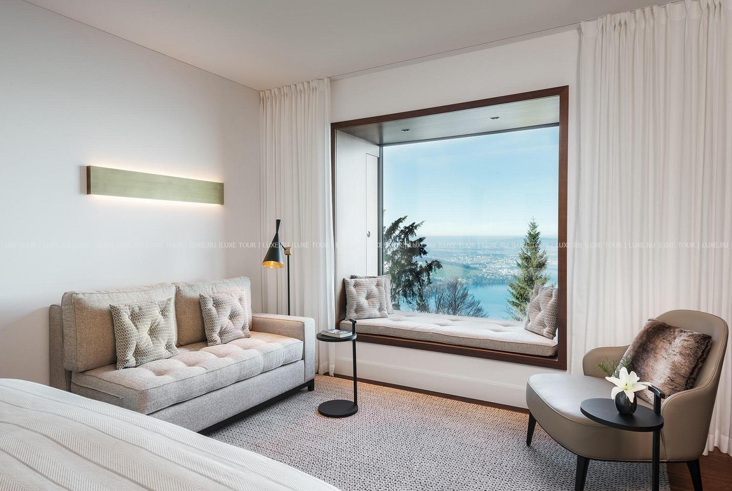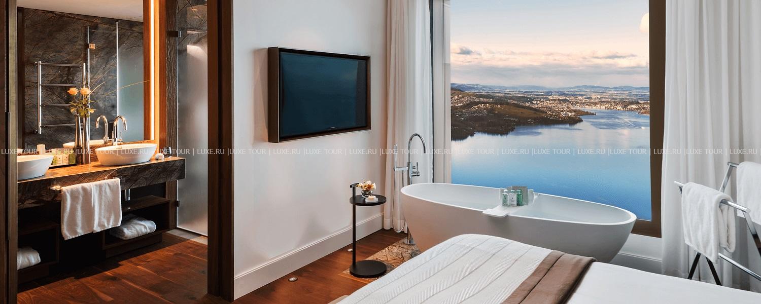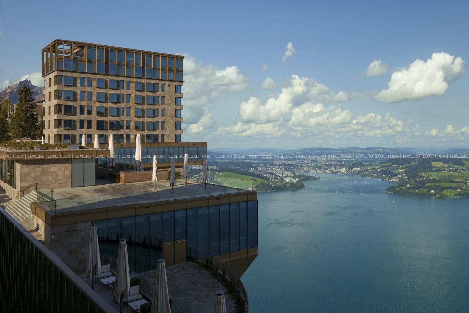 Современное здание Burgenstock Hotel находится в живописном уголке курорта Бургеншток, основанного в 1873 году, и возвышается над Люцернским озером на высоте 500 м, куда гостей доставляет знаменитый фуникулер. Завораживающий вид на синюю гладь озера, окруженного величественными Альпами, открывается в отеле отовсюду: из просторных стильных номеров, из гастрономического ресторана и элегантного бара, из фитнес-центра и панорамных бассейнов первоклассного центра Alpine Spa. Также фешенебельный отель, являющийся частью курортного комплекса Бургеншток, предоставляет широчайший спектр услуг: изысканные рестораны и бары, великолепный винный погреб, оздоровительные и спа-программы, гольф-поле, теннисные корты, детский клуб, кинотеатр, галерея бутиков, огромный конгресс-центр и многое другое. Burgenstock Hotel предлагает роскошный отдых среди сказочной природы швейцарских Альп.
