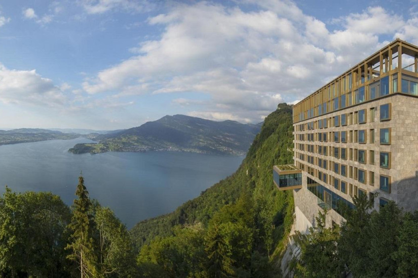 - В отеле 102 номера различных категорий, включая Guest Room и Suite. Просторные номера выполнены в элегантном современном стиле с альпийскими мотивами и отделаны натуральным деревом и камнем, а из панорамных окон и с террас открывается потрясающий вид на сверкающее Люцернское озеро и живописные Альпы.