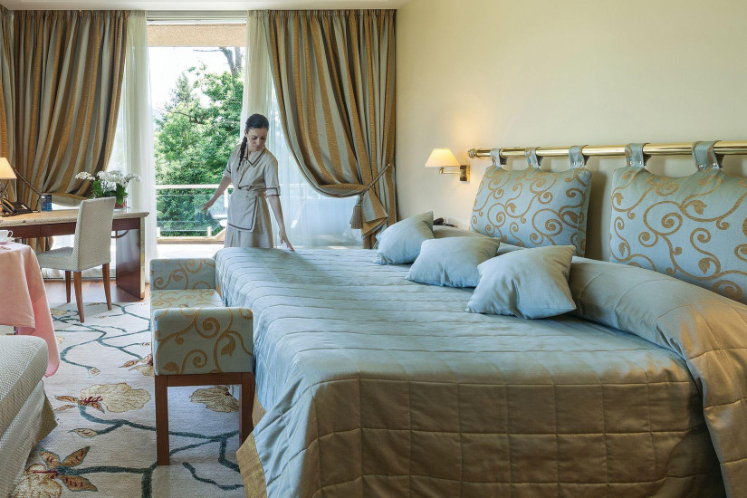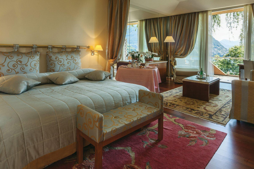 - В отеле 37 номеров категории Suite. Элегантные Интерьеры номеров воссоздают роскошную обстановку аристократической виллы, а из их окон и с террас открывается потрясающий вид на сверкающее озеро, живописные горы и чудесный парк.