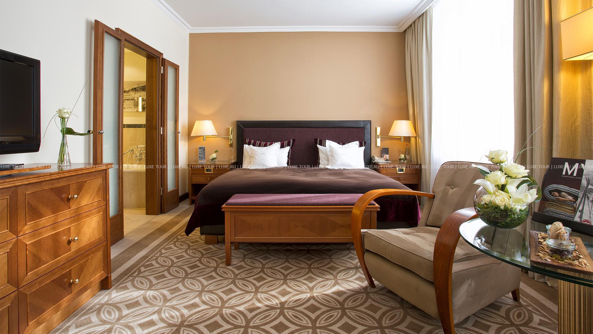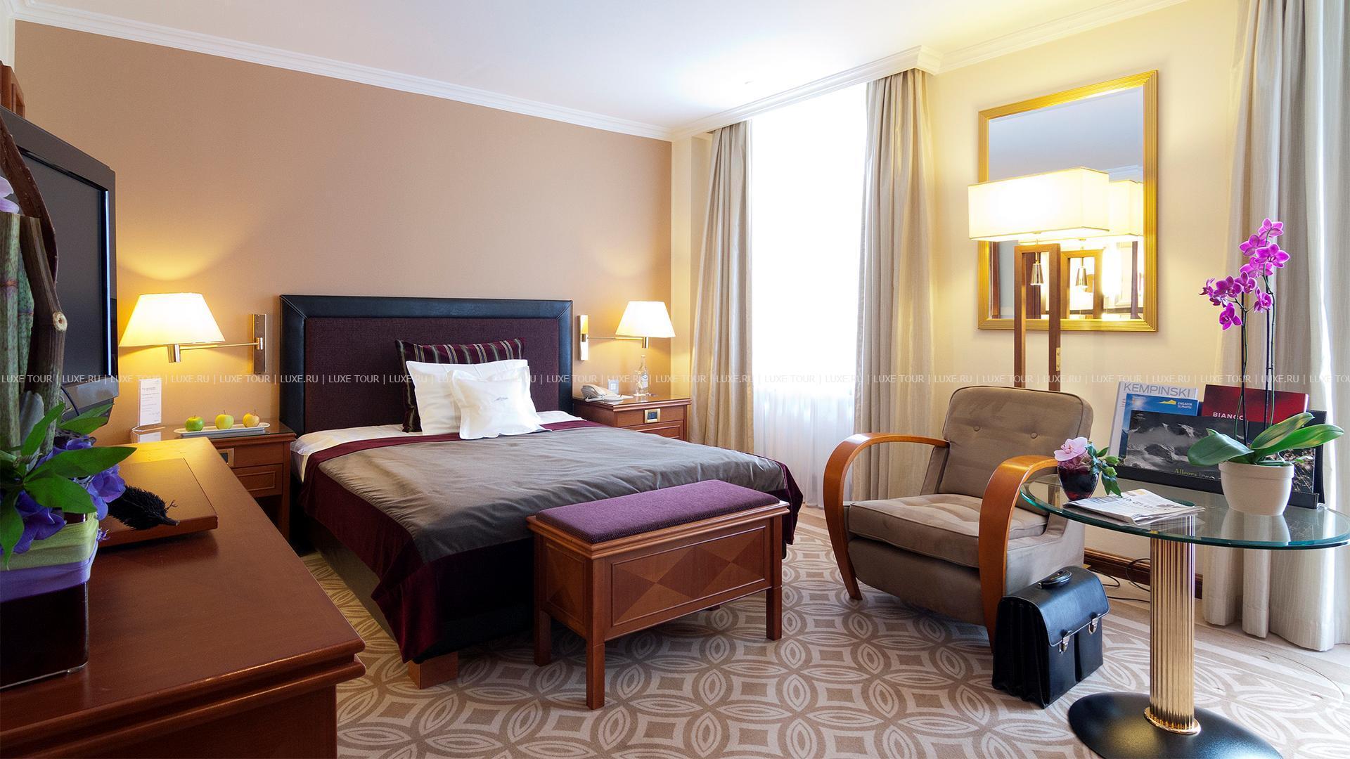 Отель расположен в центральной части Санкт-Морица, поблизости от горнолыжных трасс и станций подъемников, в 2 с половиной часах езды на автомобиле от Цюриха и Милана. Подобно сказочному замку грандиозное здание Grand Hotel des Bains Kempinski возвышается у целебного источника среди изысканного французского сада в окружении альпийских вершин. Уже 500 лет назад всемирно известный врач Парацельс заметил, что источник Mauritius и эти места врачуют недуги особым образом, и с тех пор люди постоянно приезжают сюда отдохнуть и восстановить силы. Еще одно из преимуществ этого изысканного курорта в том, что он располагается посреди спортивного центра Санкт-Морица рядом с подъемниками на Corviglia, что привлекает в Kempinski не только спортсменов-профессионалов, но и энтузиастов зимних видов спорта.