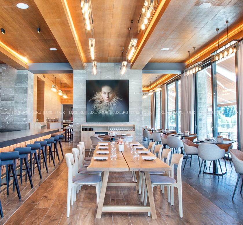 - Стильный ресторан-бистро La Rotisserie с открытой террасой и панорамным видом на горы представляет сезонные деликатесы в концепции «с фермы на стол», которую предлагает шеф-повар Мирто Маркези – обладатель звезды Мишлен.