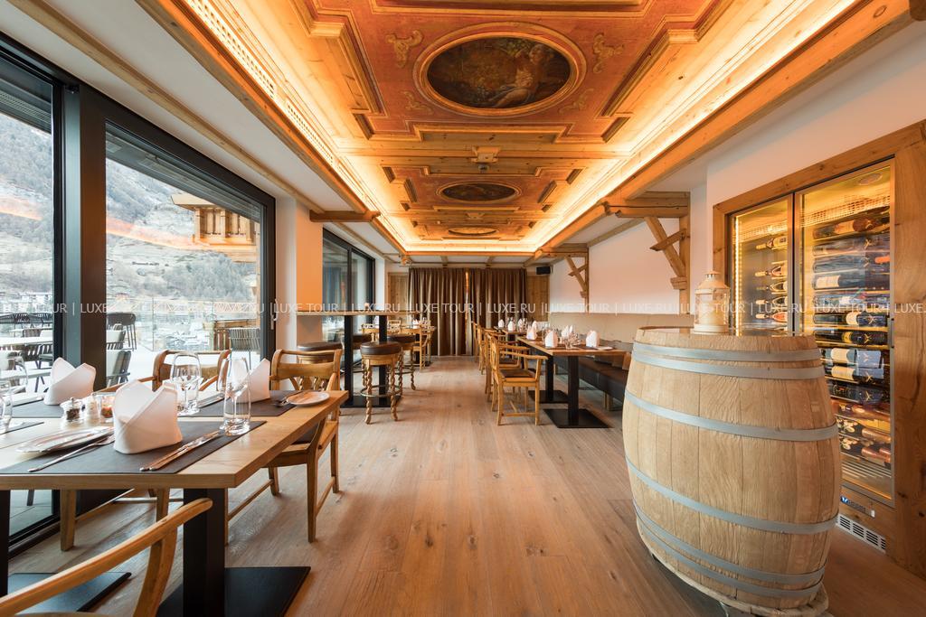 • Элегантный ресторан в альпийском стиле предлагает вкусный завтрак «шведский стол», а также меню изысканных блюд, приготовленных из свежих местных продуктов, и превосходные вина региона.