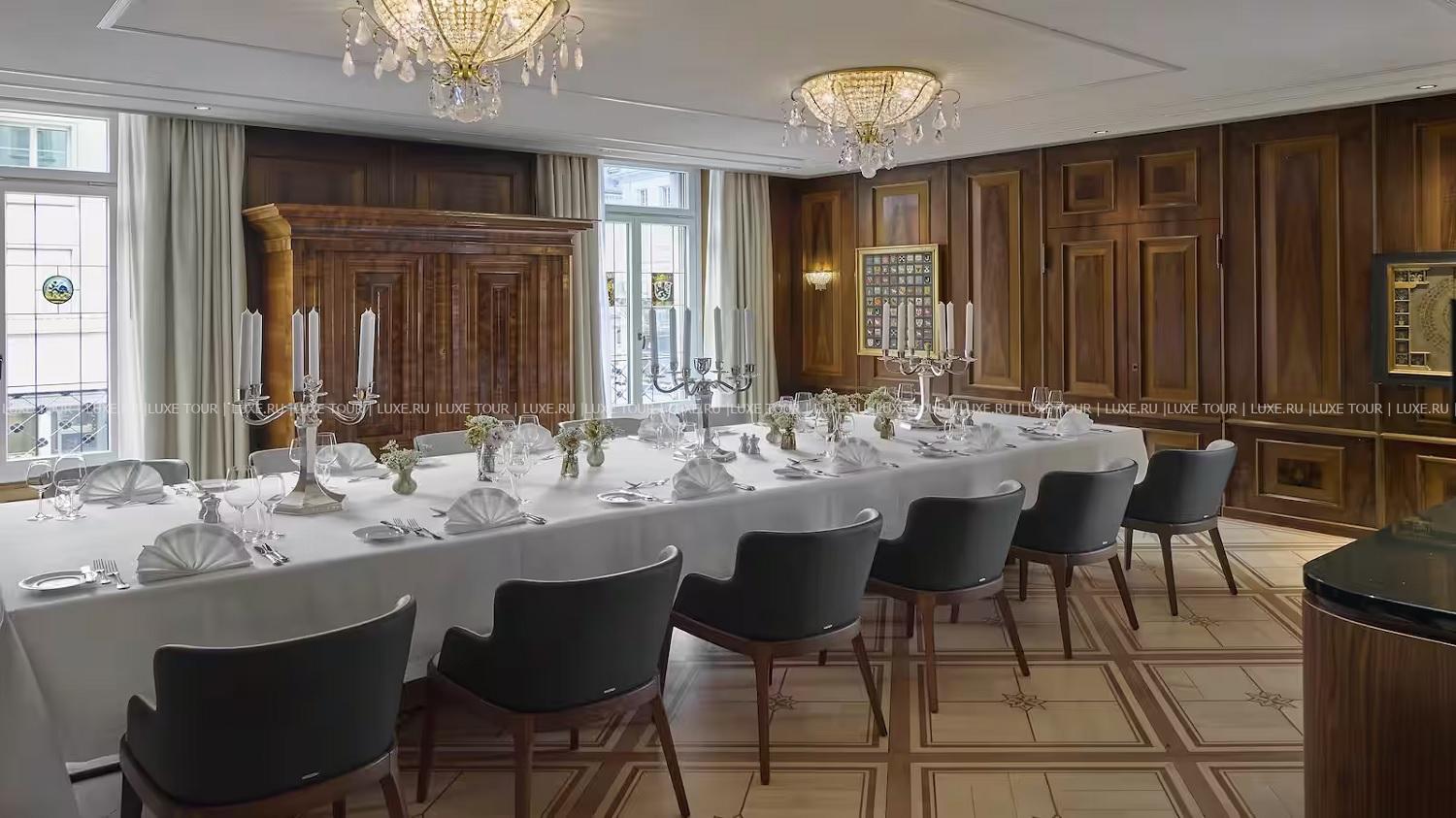- Savoy Brasserie – изысканный ресторан и бар во французском стиле, предлагающий французские блюда с швейцарскими акцентами и богатую карту вин, которыми летом можно насладиться на открытой террасе.