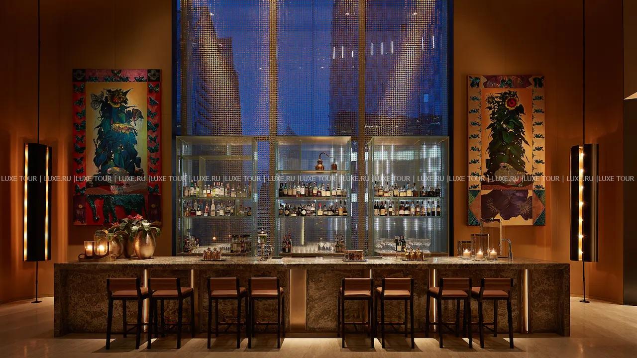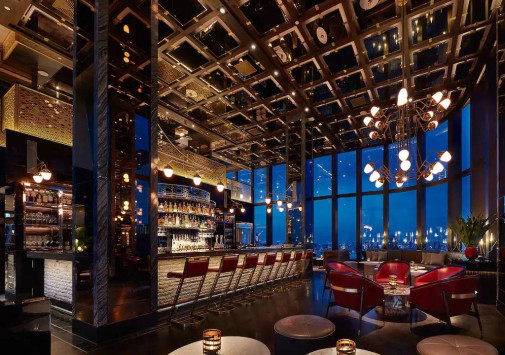 • Трехуровневый Penthouse Bar + Grill, вдохновленный динамичной атмосферой Нью-Йорка, включает: стильный стейк-хаус, предлагающий блюда из отборного мяса и морепродуктов со всего света, бар на панорамной террасе на крыше и коктейль-бар с выступлениями ди-джеев, приватным салоном в мезонине и залом Blue Room, представляющим виски Johnnie Walker.