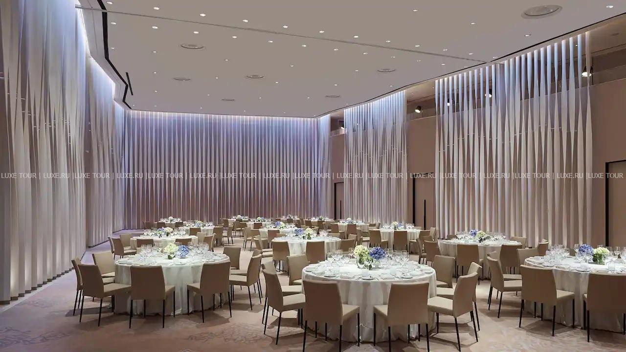 Для гостей – 12 залов для деловых и торжественных мероприятий общей площадью 2000 м2, включая роскошный зал площадью 540 м2, спроектированный японским дизайнером Хиротоши Савада, бизнес-центр, Wi-Fi, парковка, лимузин-сервис, услуги консьержа, услуги прачечной.