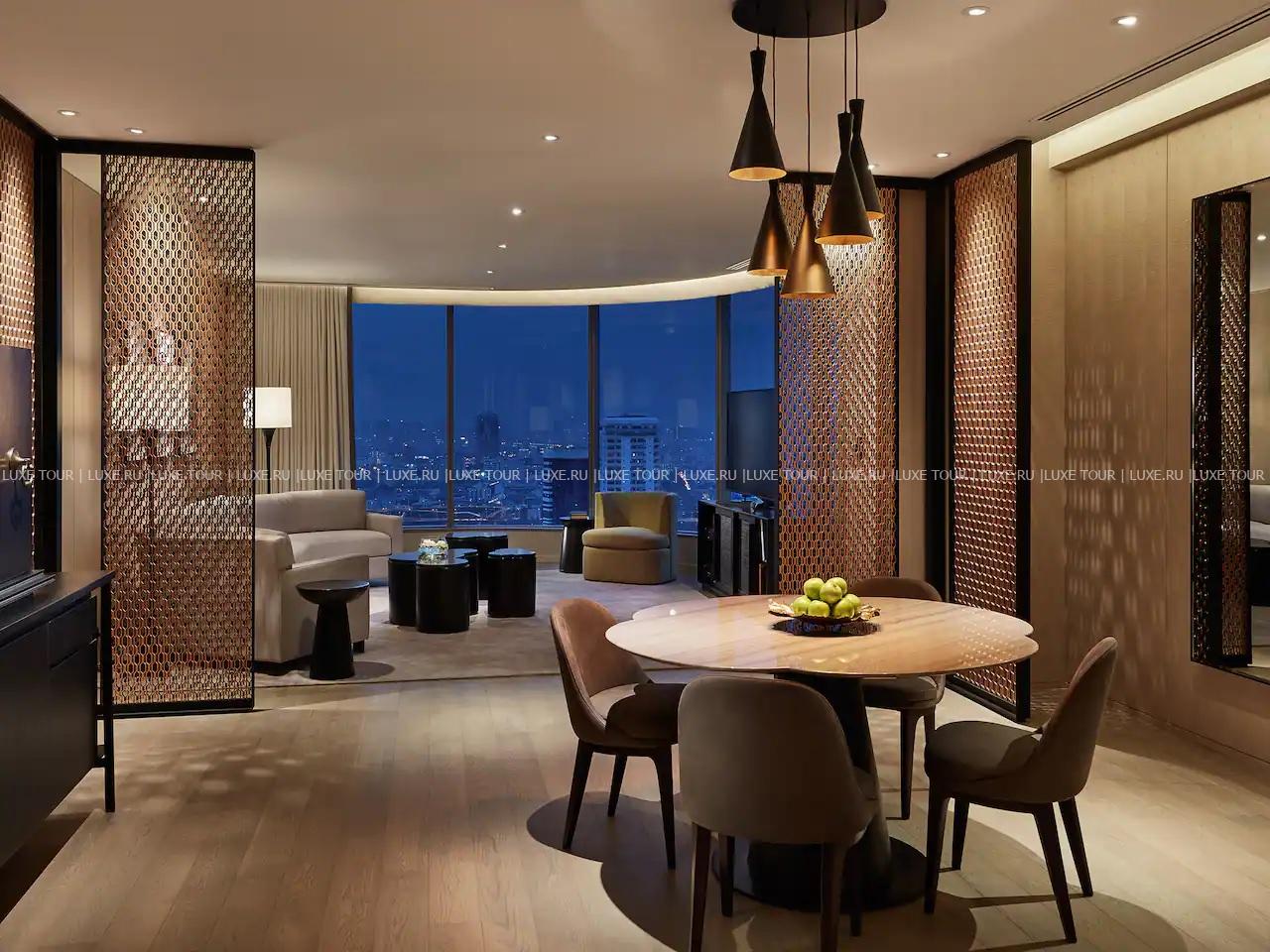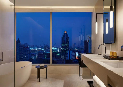 Park Hyatt Bangkok расположен в ультрасовременном здании, где также размещается люксовый торговый центр Central Embassy с именитыми мировыми брендами. Фешенебельный отель впечатляет элегантными интерьерами с инсталляциями известного японского художника Хиротоши Савада и предлагает весь спектр услуг, которыми славится марка Park Hyatt – от шикарных номеров, ресторанов высокой кухни и бара на крыше до великолепного центра Pañpuri Organic Spa, 40-метрового бассейна с панорамным видом на город и конгресс-центра площадью 2000 м2. Park Hyatt Bangkok предлагает сочетание эксклюзивного сервиса, авангардного дизайна и культурного наследия Таиланда.