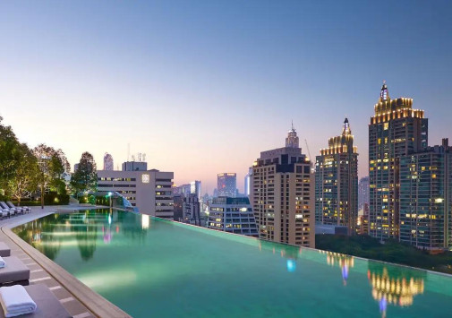 В отеле имеется открытый 40-метровый бассейн-инфинити с морской водой и панорамным видом на Бангкок.