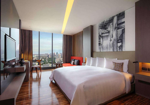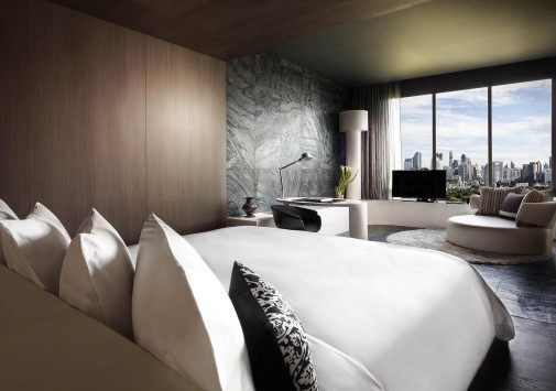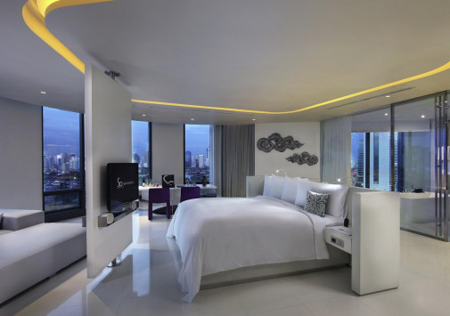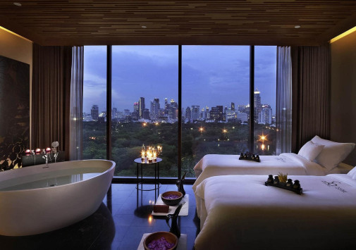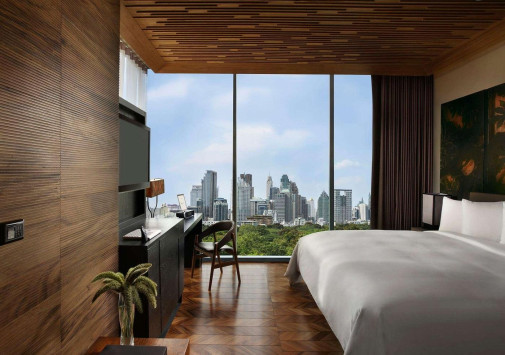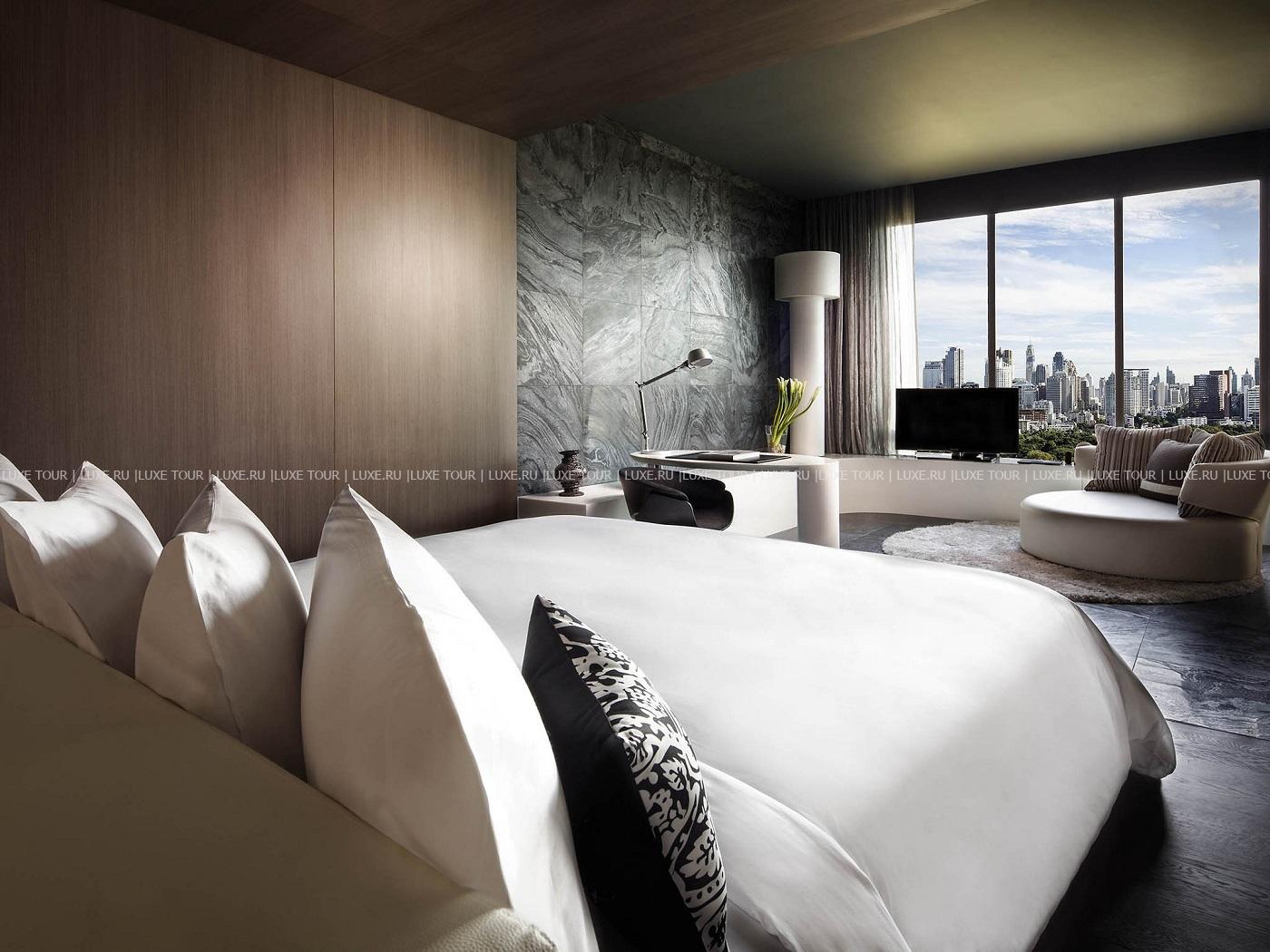 Современная башня SO/ Bangkok возвышается в деловом центре Бангкока, рядом с живописным парком Люмпини. За оригинальным фасадом отеля скрываются не менее впечатляющие интерьеры, созданные всемирно известным французским кутюрье и дизайнером Кристианом Лакруа. Основа дизайнерской концепции – «Древо жизни», соединившее пять природных элементов: огонь, воду, дерево, металл и землю. Идею легендарного маэстро помогли реализовать четыре известных таиландских дизайнера, каждый из которых создал свой образ природных стихий. Эта тематика отражена во всех помещениях отеля – от шикарных номеров с прекрасным видом на город, элегантных ресторанов с изысканной кухней и стильных баров до роскошного спа-центра и высокотехнологичных конференц-залов. После увлекательных экскурсий или деловых встреч гости отеля могут поплавать в панорамном бассейне и отдохнуть на террасе бара, расположенной на крыше.