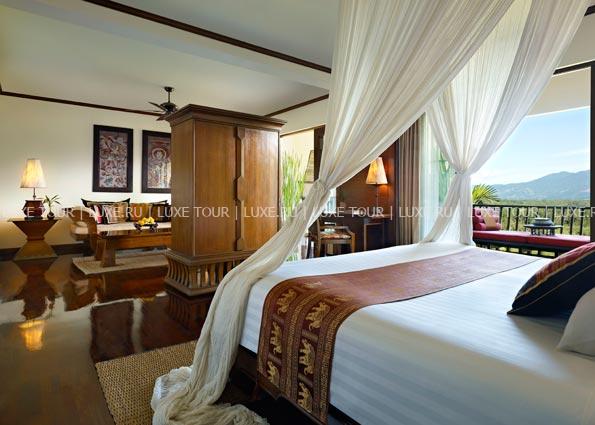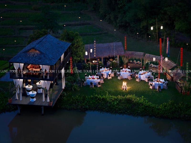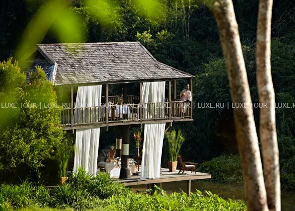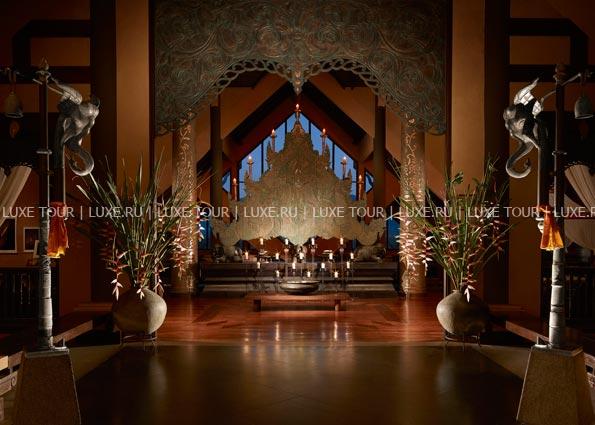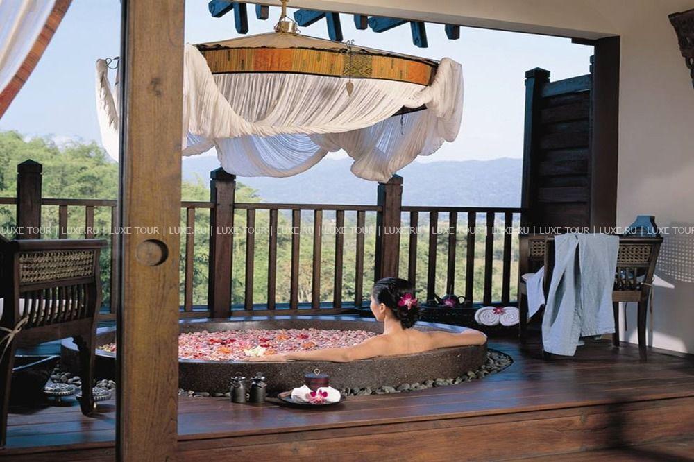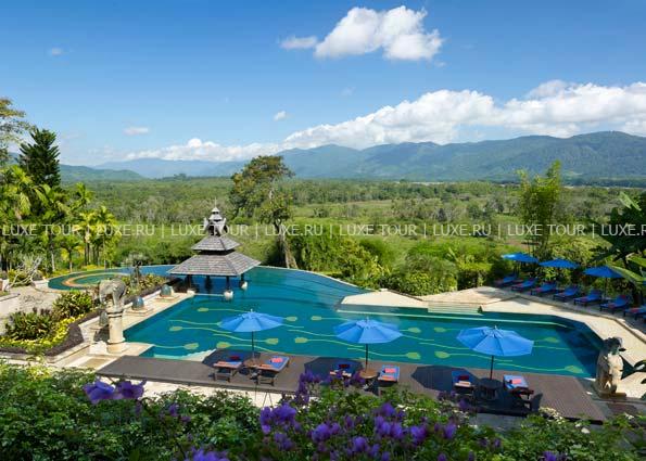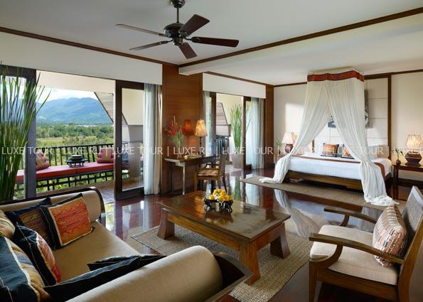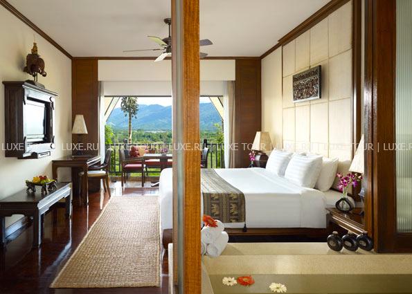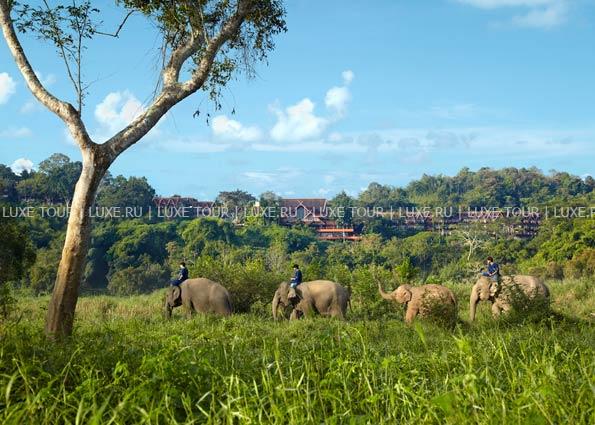 Изящные здания Anantara Golden Triangle Elephant Camp & Resort, выполненные в традиционном тайском стиле, с причудливыми островерхими крышами, украшенными искусной деревянной резьбой, расположились среди пышной тропической зелени, в окружении подернутых дымкой гор северного Таиланда, живописной долины лаосской реки Меконг и густых бамбуковых джунглей, протянувшихся вдоль границы Мьянмы. В комфортабельных номерах – элегантные интерьеры в светлых тонах, с отделкой из резного тикового дерева, большими кроватями с пологами из тончайшей ткани, изысканными украшениями в тайском стиле, уютными балконами и террасами, с которых открывается изумительный вид на живописные ландшафты сразу трех стран – Таиланда, Бирмы и Лаоса. В отеле открыт спа центр Anantara Spa, включающий 5 процедурных кабинетов с душевыми кабинами, парными, открытыми террасами с ваннами и чудесным видом на сады, здесь предлагается большой выбор различных спа процедур и программ с использованием натуральных продуктов, также в Центре работает салон красоты. На территории Anantara Resort Golden Triangle находятся: открытый бассейн, гидромассажная ванна, тренажерный зал, площадка для сквоша, предлагается горный велосипед, спуск на лодках по реке Меконг, прогулки на слонах, проводятся курсы северной тайской кухни.