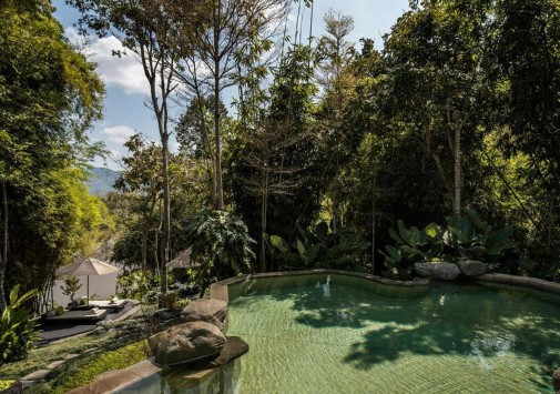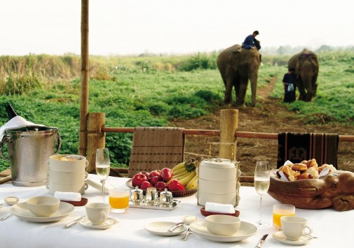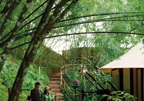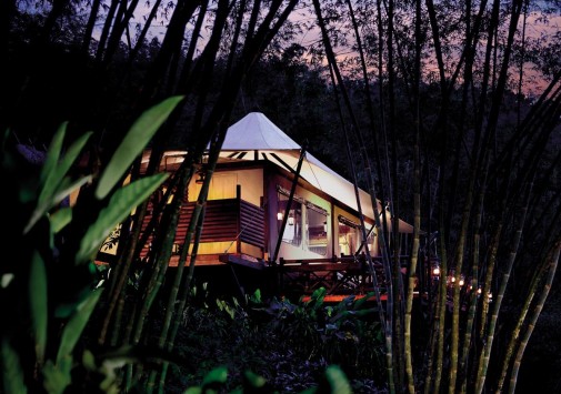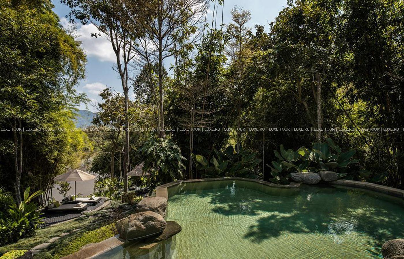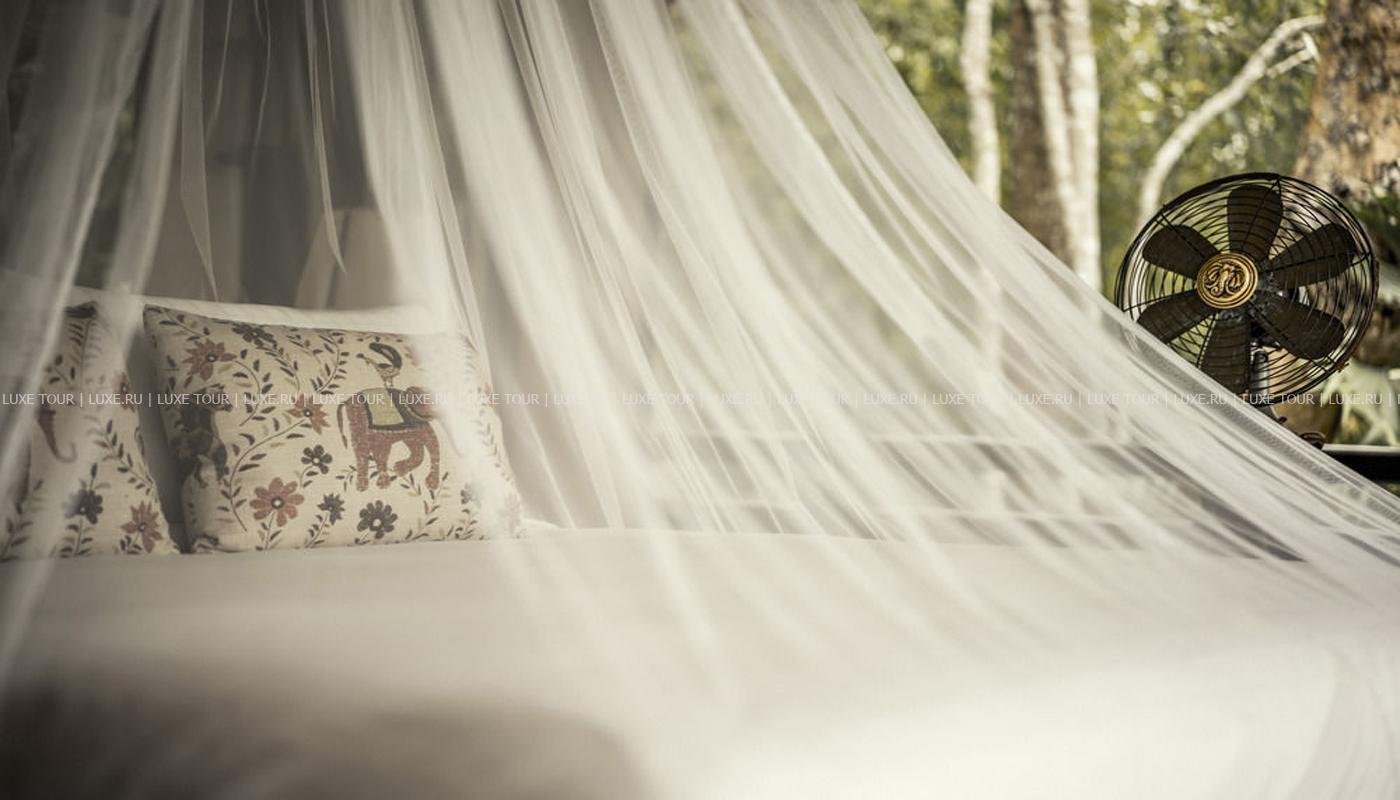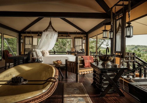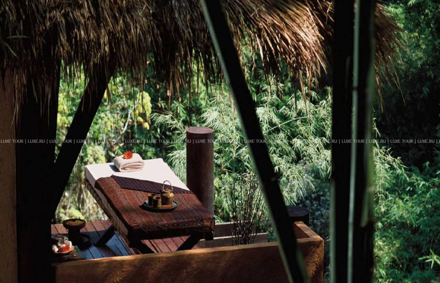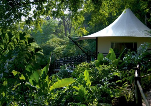 Там, где встречаются три древних азиатских государства, в окружении пышной зелени лесов, величественных горных склонов, у извилистой реки Ruak, расположился уникальный Four Seasons Tented Camp Golden Triangle, открытый в 2006 году и включающий всего 15 отдельно стоящих бунгало - шатров, выполненных в стиле палаточного лагеря исследовательских экспедиций 19 века и расположенных на живописном горном склоне. В просторных номерах – индивидуальные интерьеры с отделкой из тикового дерева, удобной мебелью ручной работы, кроватями под пологами из тончайшей ткани, украшенные тайскими артефактами, в каждом из номеров имеются оригинальные медные ванны, отделанные искусной чеканкой, экзотические «ливневые» души и просторные террасы с изумительным видом на реку Ruak, ландшафты Мьянмы, лаосские горы и густые джунгли Золотого Треугольника. Отель располагает СПА Центром Jungle Spa, расположенном среди бамбуковых лесов и зелени сада, м включающем зону с ванными и душевыми и 2 открытых процедурных павильона, предлагающих широкий спектр различных видов массажа и СПА процедур, основанных на традиционных и современных тайских методиках и с использованием местных натуральных продуктов, включая горные травы. В Four Seasons Tented Camp Golden Triangle находится открытый бассейн с джакузи, предлагаются прогулки на слонах по джунглям, экскурсии в питомник слонов и обучение дрессуре этих животных, речные прогулки по реке Меконг, рыбалка, путешествия в горы, экскурсии по Золотому Треугольнику, курсы тайской кулинарии и тайских традиционных ремесел, лекции о культуре и истории северного Таиланда.
