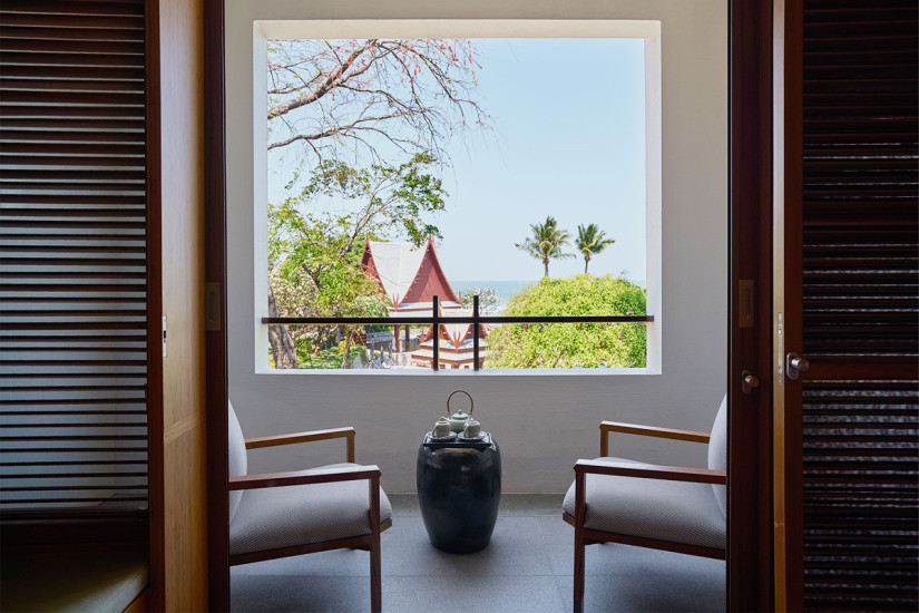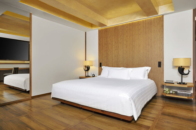 48 м2. Расположен в основном здании, состоит из спальни с гостиной зоной, гардеробной, ванной комнаты, балкона или террасы с видом на океан.