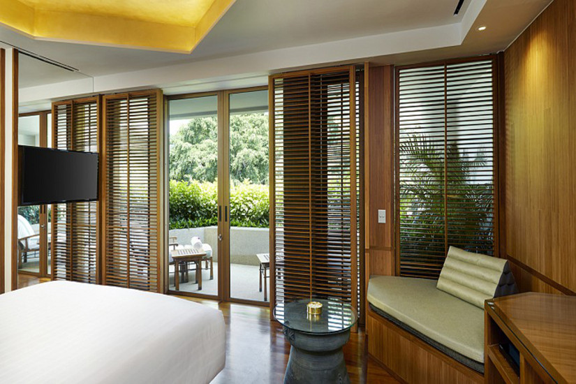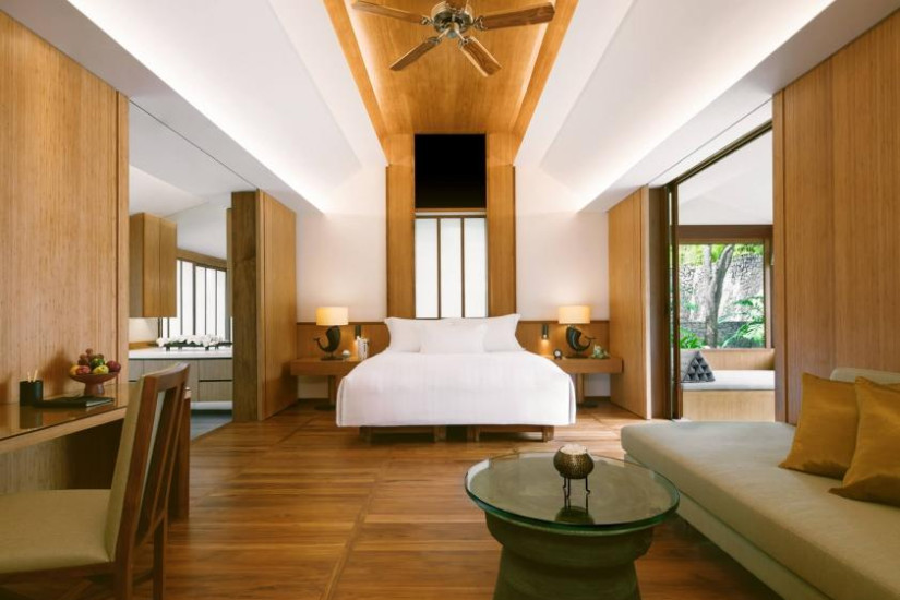 - 34 м2. Расположен в основном здании, состоит из спальни, ванной комнаты, гардеробной, балкона или террасы с видом на сад или бассейн.