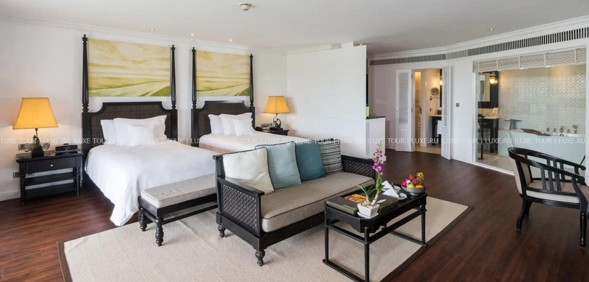 - В отеле номера и вилы различных категорий. Просторные комфортабельные номера декорированы в элегантном современном стиле, навеянном тайскими традициями, а с балконов и террас открывается великолепный вид на пышные тропические сады и Сиамский залив.