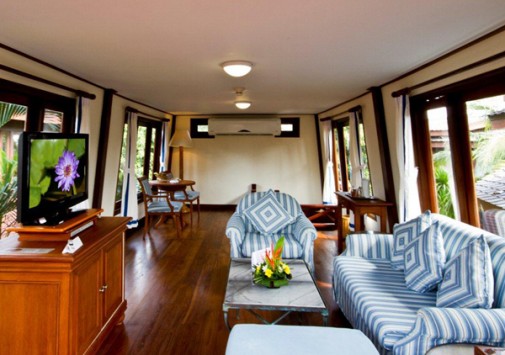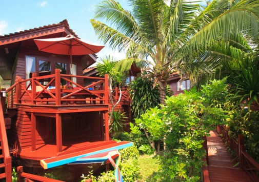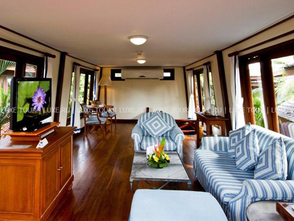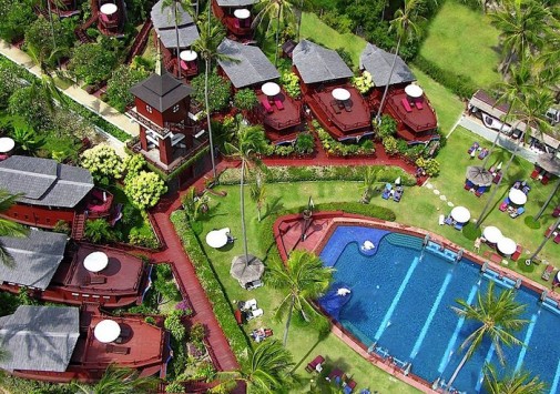 Отель расположен на северо-восточном побережье острова, вдали от основных туристических зон. Основная часть номеров отеля расположена в трехэтажных корпусах, с видом на сад и бассейн, но настоящей изюминкой отеля являются рисовые баржи, превращенные в номера-люкс Boat Suites.