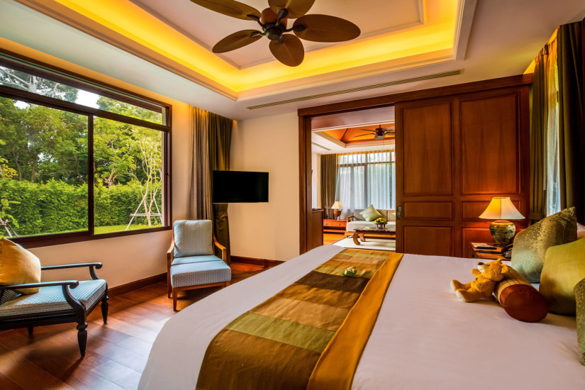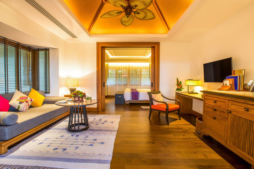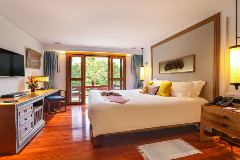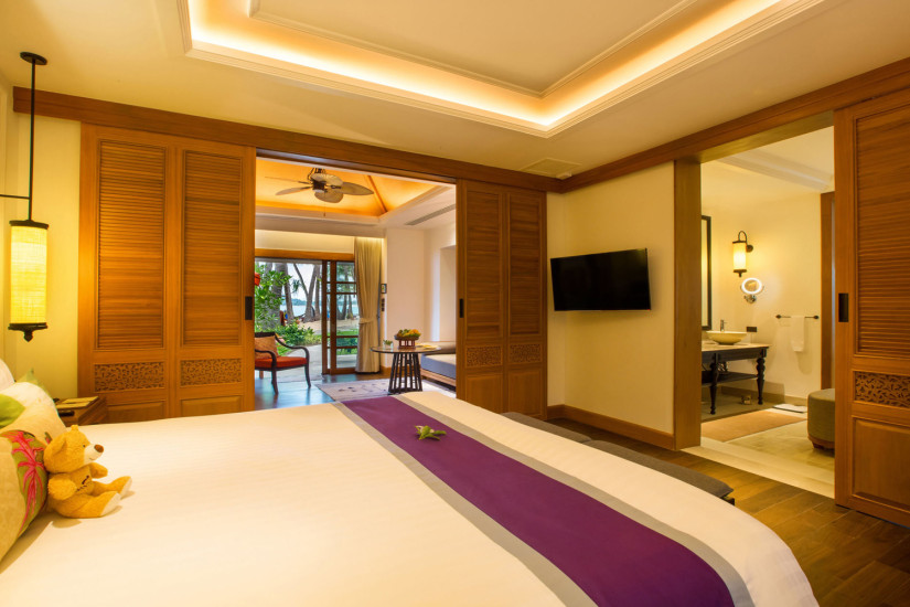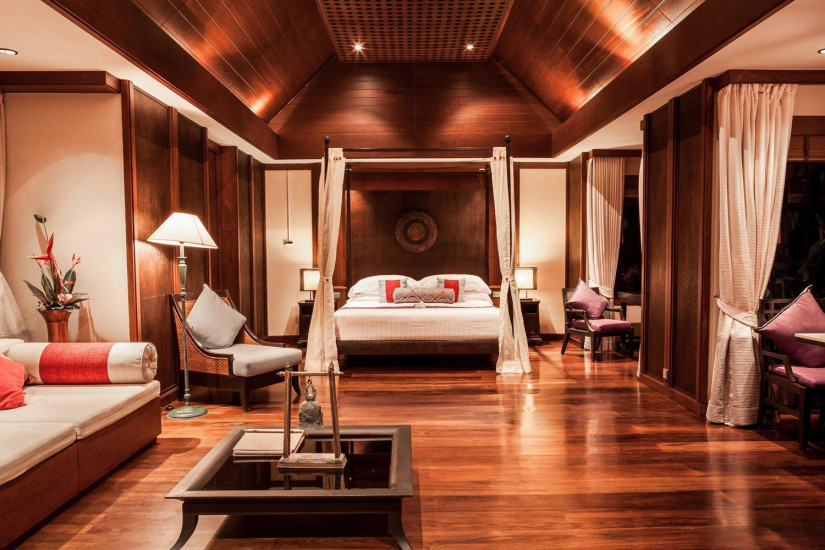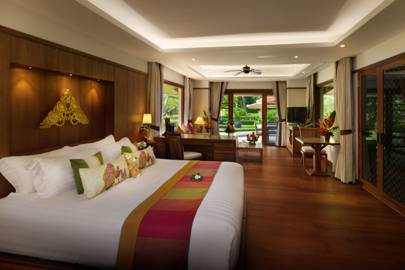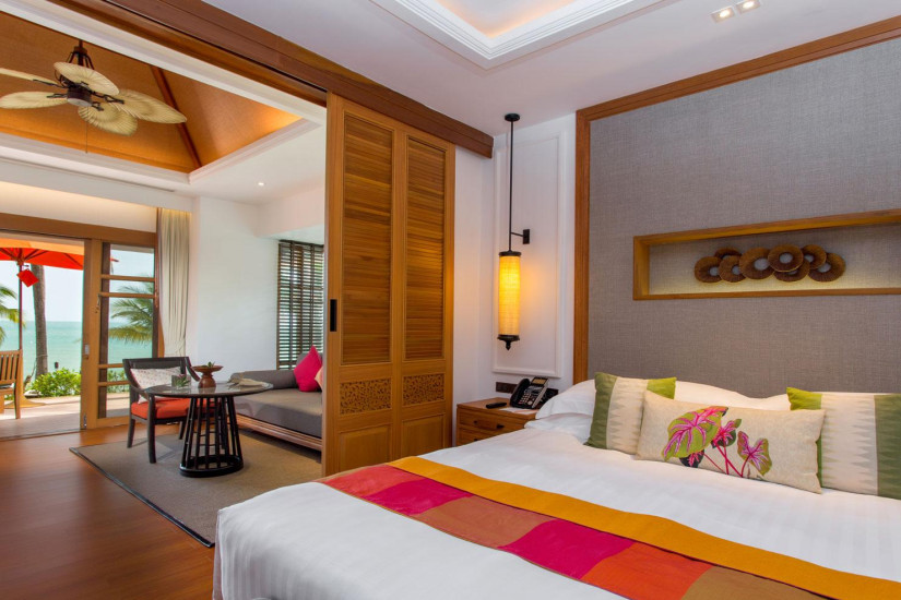 - В отеле 71 комфортабельный номер различных категорий, включая Suites и Villas. В номерах – элегантные интерьеры в современном тайском стиле, с отделкой и полами из тикового дерева, изящной мебелью, оригинальными украшениями, с балконов и террас открывается прекрасный вид на море и сады.