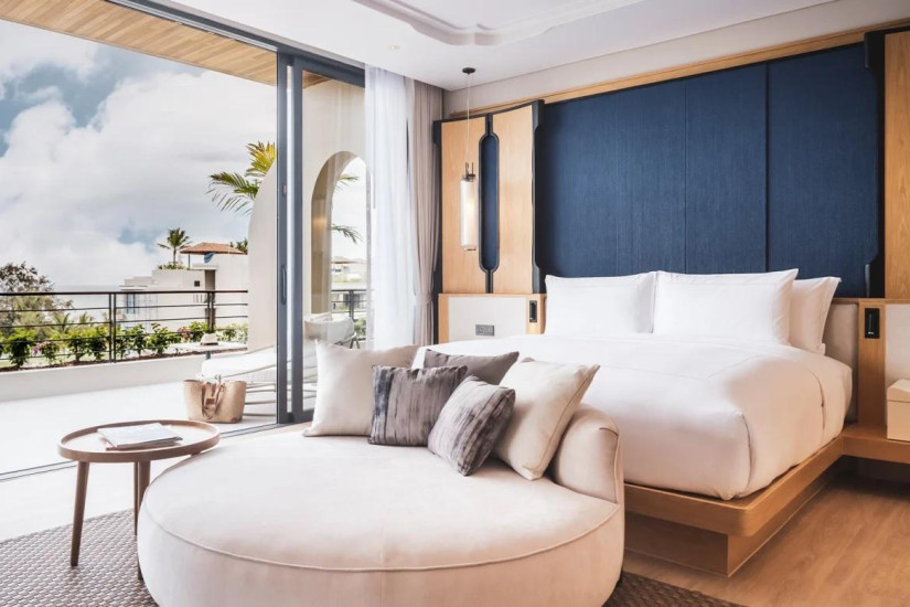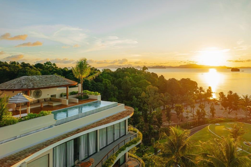 - 366 м2. Роскошный двухуровневый номер состоит из спальни с кроватью king-size, гостиной, столовой, кухни, гардеробной, ванной комнаты открытого плана с ванной и двумя душами, террасы с большим бассейном, душем на открытом воздухе, зоной отдыха, обеденной зоной и панорамным видом на море и карстовые острова. Номера расположены на верхнем этаже. Максимальное размещение – 2 взрослых + 1 ребенок. Гостям номера предоставляются услуги дворецкого.