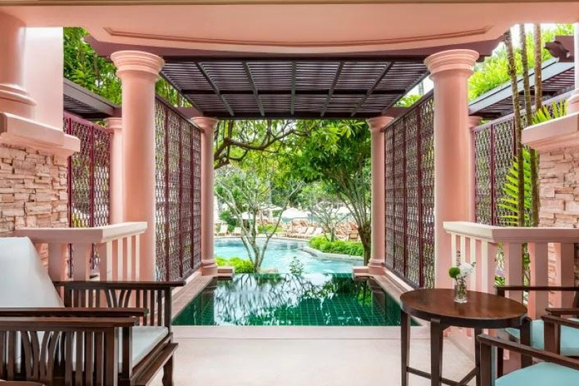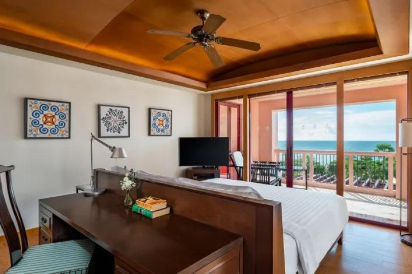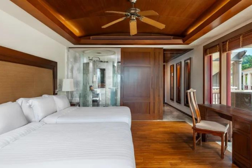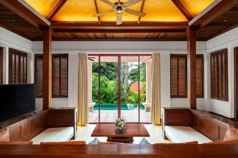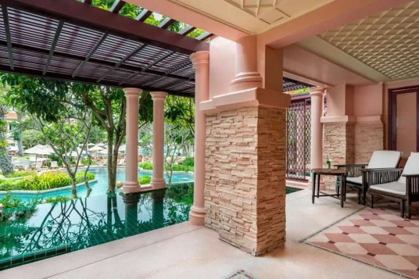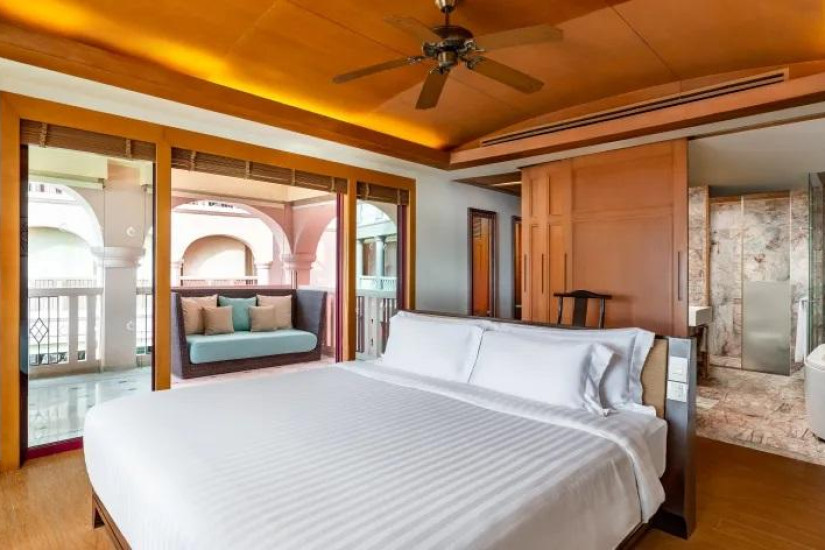 - 209 м2. Cостоит из двух спален с кроватью king-size и двумя кроватями twin, гостиной, столовой зоны, ванной комнаты, джакузи, просторной меблированной террасы и небольшого бассейна. Вид на море. Вид на бассейн. Вид на сад. Максимальное размещение – 5 взрослых или 4 взрослых + 3 ребенка.